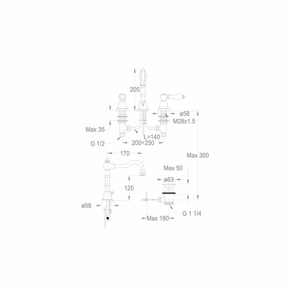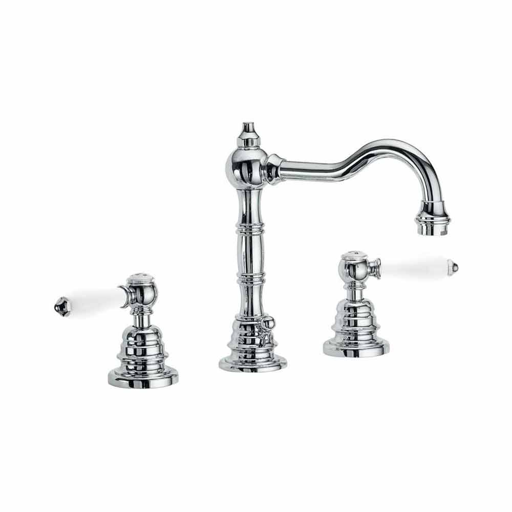 Waschtischmischer aus verchromtem Messing mit einem äußerst klassischen Design von 205 mm Höhe und einem Achsabstand von 170 mm, komplett mit Ablauf und Aufstellhebel. Komplett in Italien hergestellt mit hochwertigen Materialien, die den europäischen Standards entsprechen. Dieser Mischer kann oben installiert werden und ist mit einem Belüfter und einem 90 ° -Keramikkopf ausgestattet. Empfohlen für das Energiesparsystem zur Wassereinsparung von 6 l / min und den drehbaren Auslauf.
