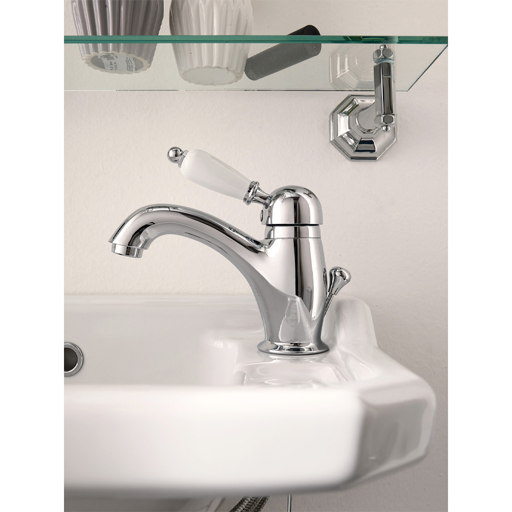 Waschtischbatterie mit klassischem Hebel aus handgefertigtem Messing, hergestellt in Italien.