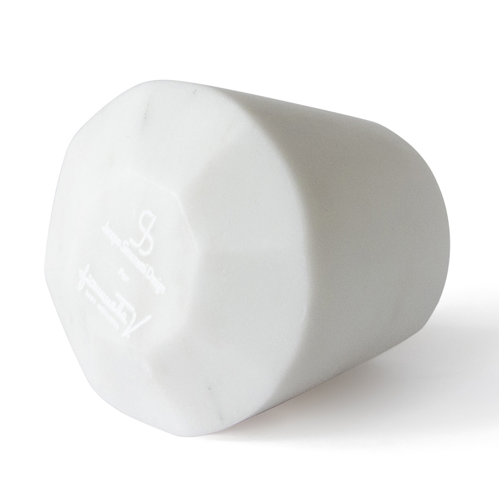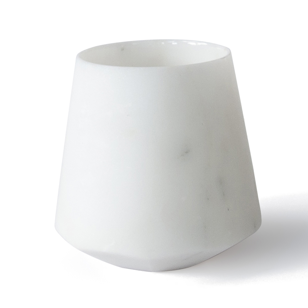 Dieses Wasserglas zeichnet sich durch die Eleganz aus, die es ausstrahlt und die es sowohl auf dem Tisch als auch als Dekorationsobjekt verleiht. Ein raffiniertes und raffiniertes Design, das dank seiner Wesentlichkeit, die durch den mattweißen Carrara-Marmor, aus dem es hergestellt wird, unterstrichen wird, zum Protagonisten in der Umgebung des Reiseziels werden kann.