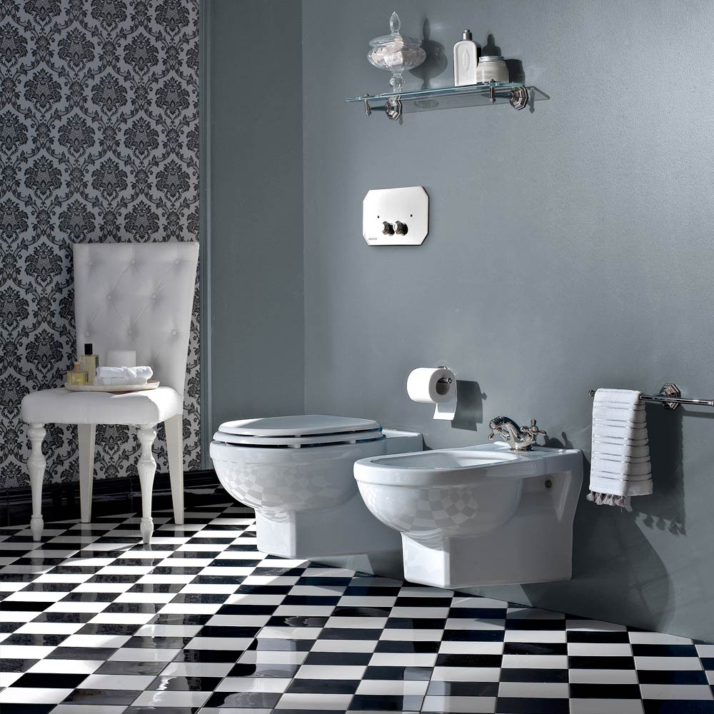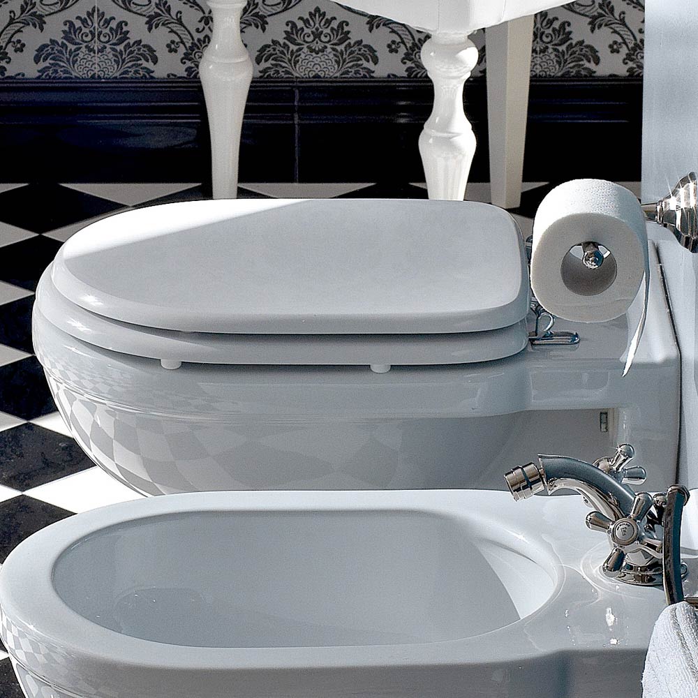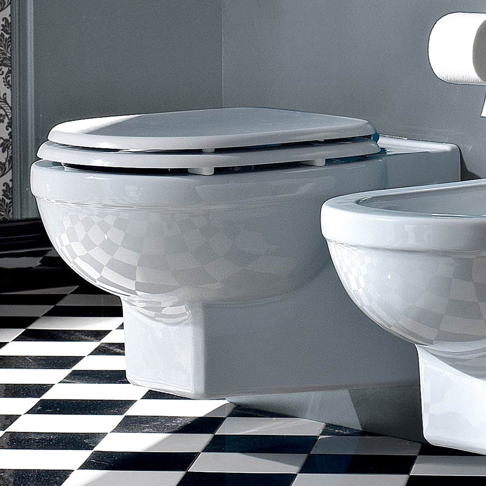 Klassisches Design der WC-WC-Aufhängung aus weißer Keramik, hergestellt in Italien.