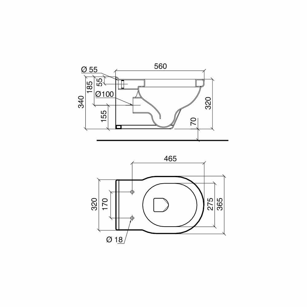 WC Gefäß mit einem Tropfrand, in Handarbeit in Italien in