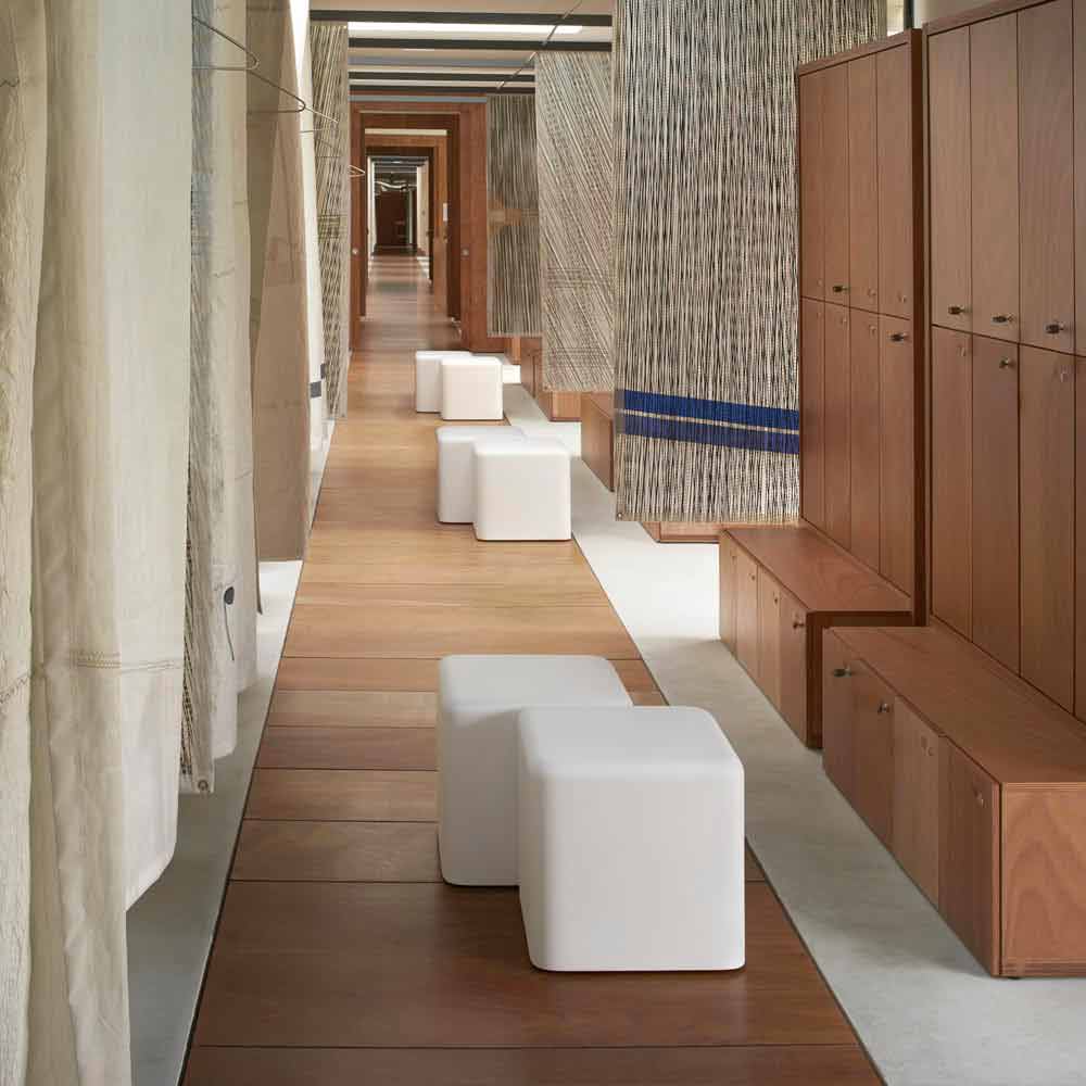 Hergestellt aus weichem Polyurethan und in fünf verschiedenen Farben erhältlich: - Rot; - Weiss; - Ton; - Gelb; - Schwarz. Die Struktur des inneren Metallrahmens macht Soft Cube sehr widerstandsfähig; es ist wasserdicht, feuerfest und leicht waschbar.