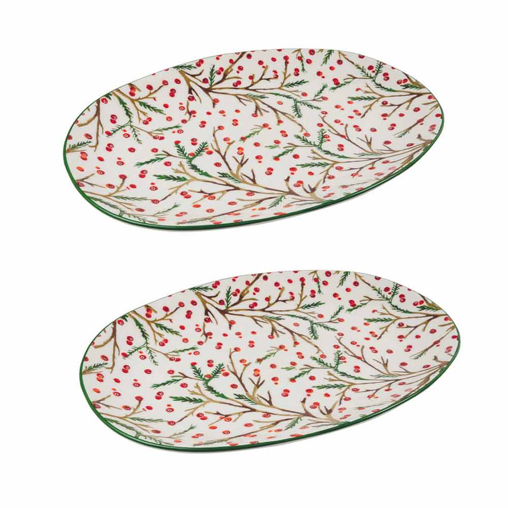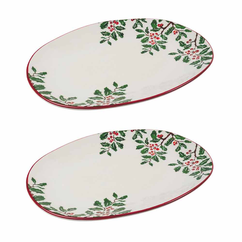 2 ovale Weihnachtstabletts aus Dolomit mit Dekorationen zur Auswahl zwischen Stechpalme oder Metzgerbeere.