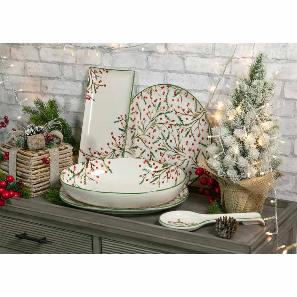 Dekorieren Sie Ihr Zuhause und Ihren Tisch mit dem natürlichen Stil der ovalen Weihnachtsteller ausPorzellan mit den typischen Weihnachtsdekorationen, die aus Stechpalmenzweigen in Kombination mit Rot, dem Symbol für Weihnachten schlechthin, oder Stechpalmenbeeren in Kombination mit einer Verfeinerung des Materials ausgewählt wurden Dies wird dazu beitragen, einen Hauch von Magie zu verleihen und die Inszenierung einfach und elegant zu gestalten.