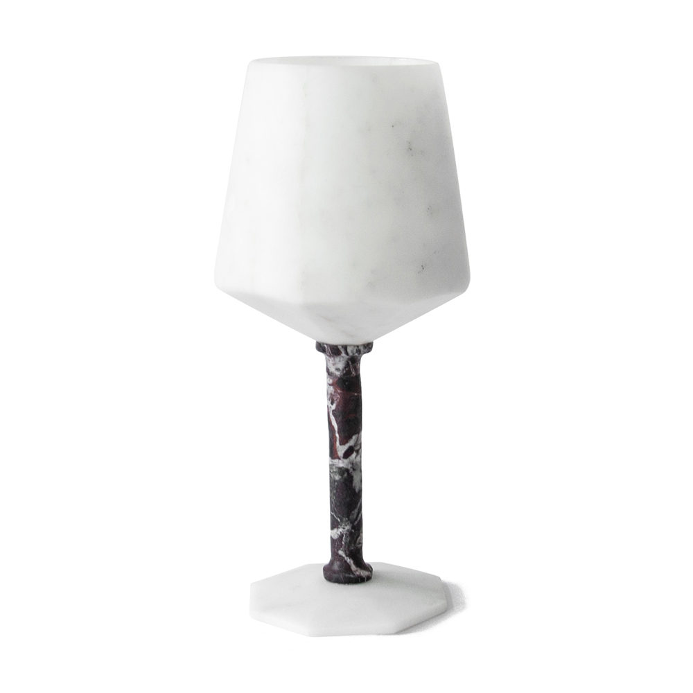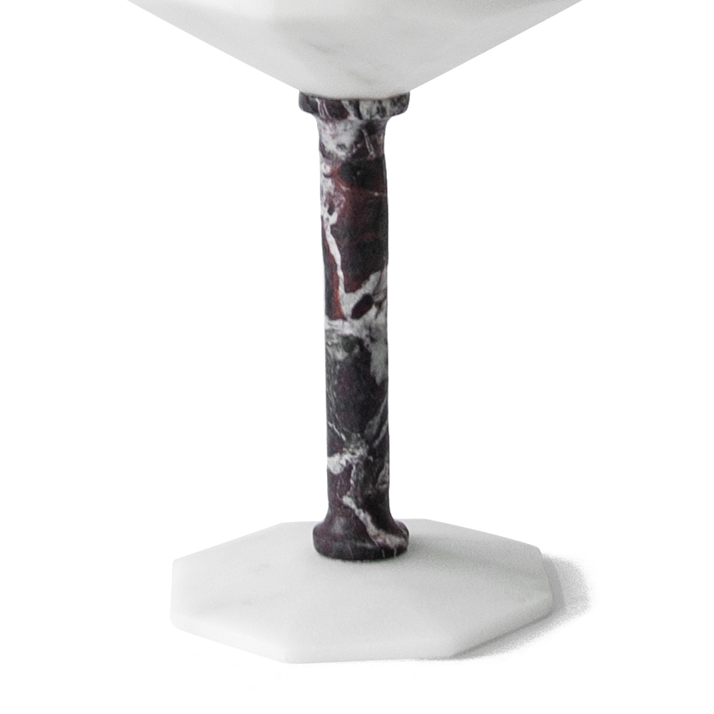 Weinglas aus satiniertem weißem Carrara-Marmor und rotem Levanto, Design made in Italy.