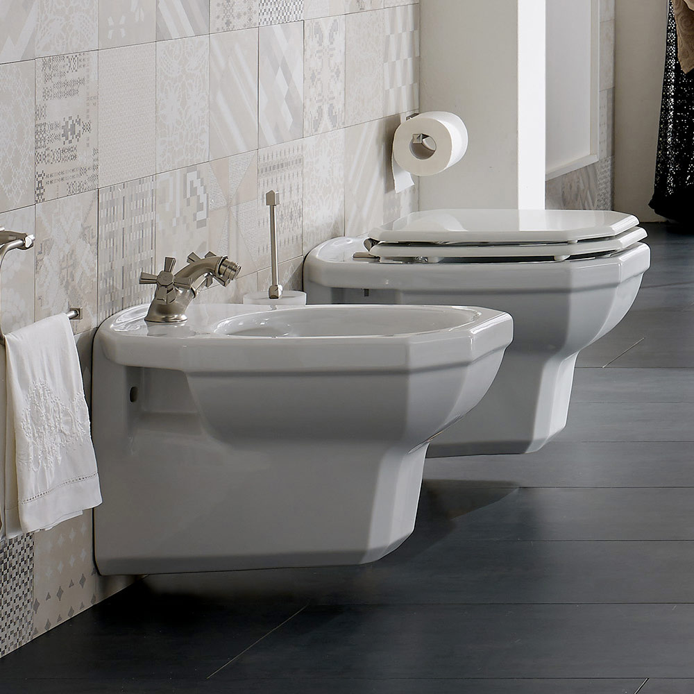 Weißes Nausica-Wand-WC im klassischen Stil aus Keramik, hergestellt in Italien.