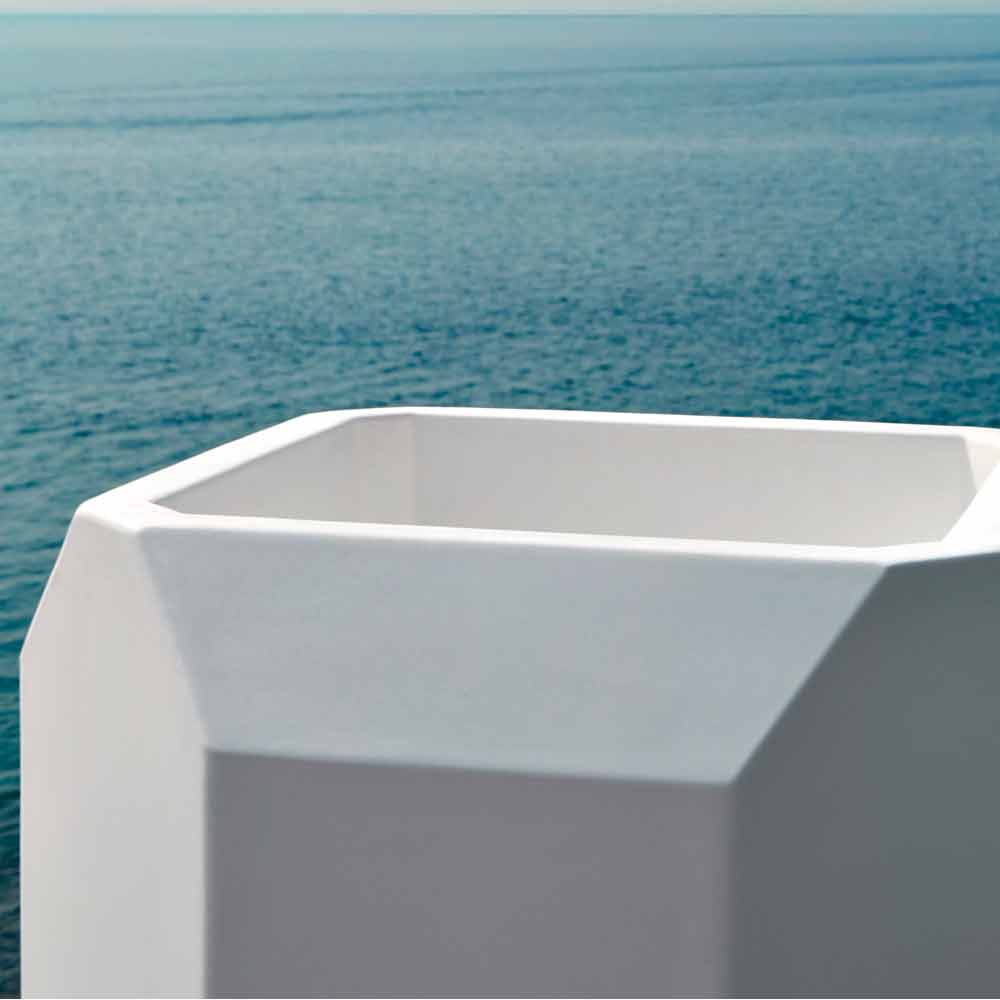 Inspiriert vom Schneiden von Edelsteinen hat es eine Poleasy-Struktur in einem weißen Finish, das gegen UV-Strahlen beständig ist und keine Oberflächenporosität aufweist. Geeignet für die Einrichtung Ihres Hauses und Ihrer Vertragsumgebung mit äußerster Zartheit und Eleganz. Gem ist in drei verschiedenen Größen erhältlich: - L 120 x P 40 x H 80 cm; - L 50 x P 50 x H 120 cm; - L 50 x P 50 x H 53 cm.