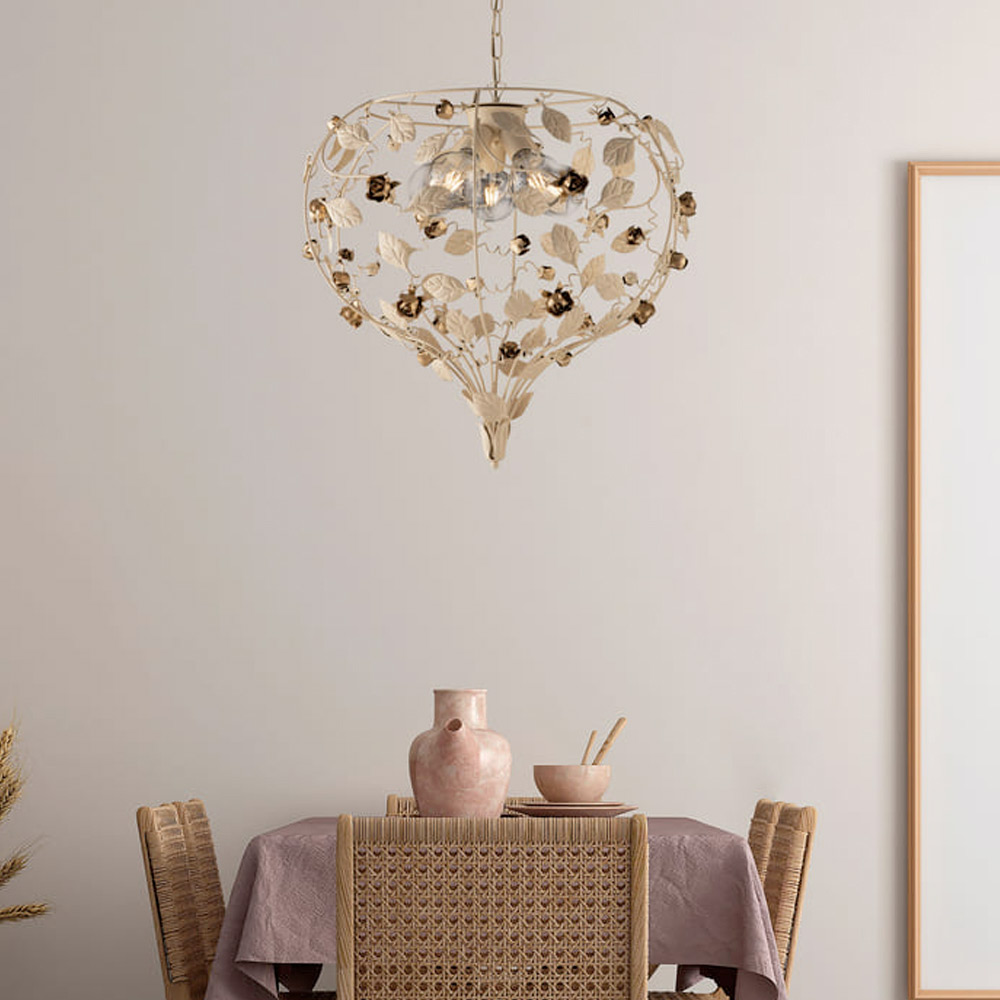 Erhältlich in der edlen Ausführung Shabby White , hell und romantisch, oder in der warmen und kostbaren Version Ivory mit Golddetails , fügt sich dieser Kronleuchter harmonisch in elegante Wohnzimmer, Esszimmer, repräsentative Eingangsbereiche und repräsentative Objektumgebungen ein.