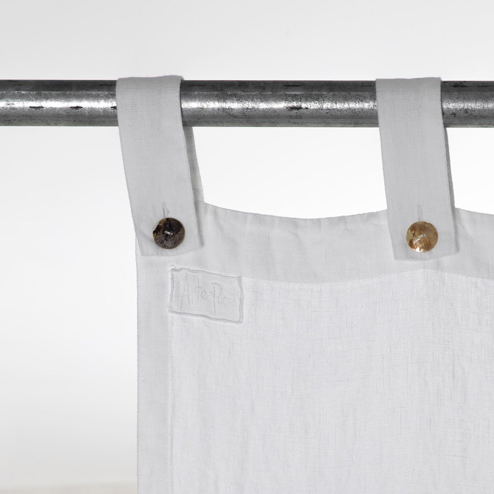 Weißer schwerer Leinenvorhang mit Knopfverschluss von elegantem Design, Luxus made in Italy.