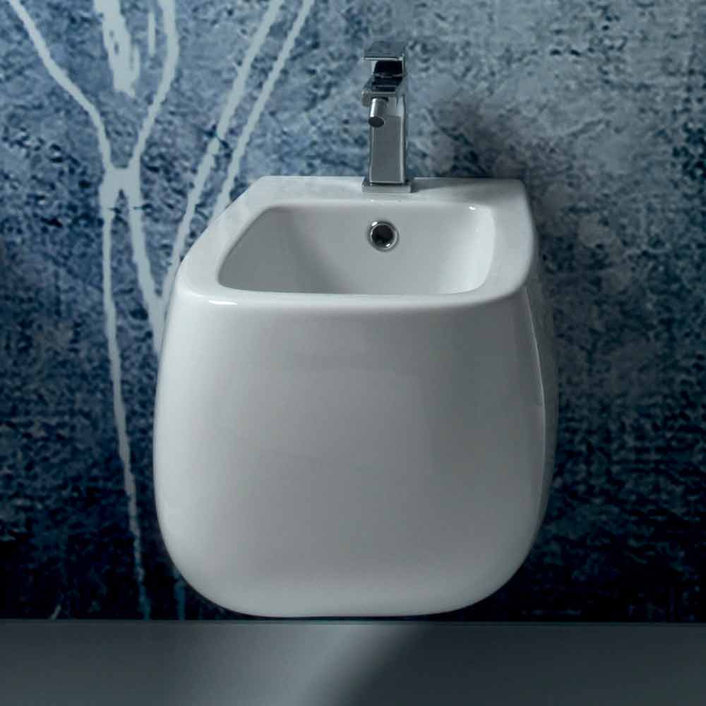 Modernes Wand-Bidet aus weißer Keramik, hergestellt in Italien Gaiola Gaiola ist ein hängendes Bidet aus weißer Keramik mit minimalistischem und modernem Design Die Befestigungswinkel sind im Preis inbegriffen.