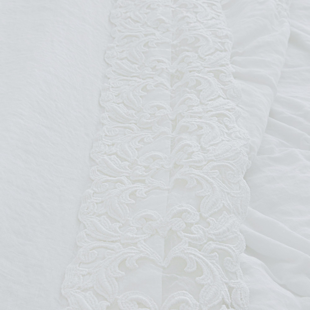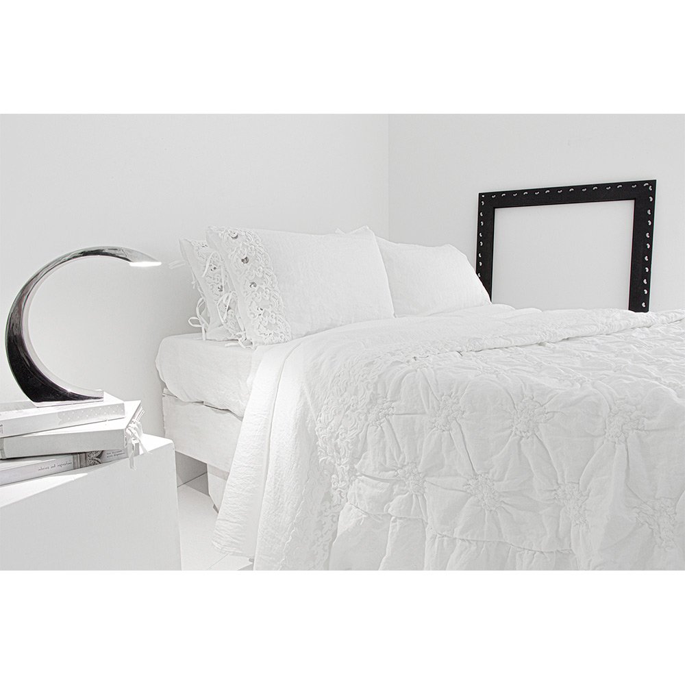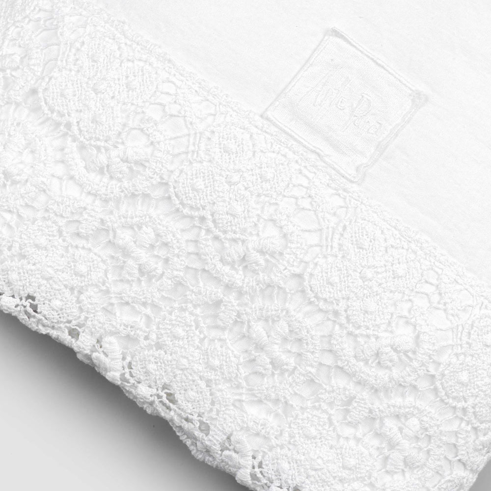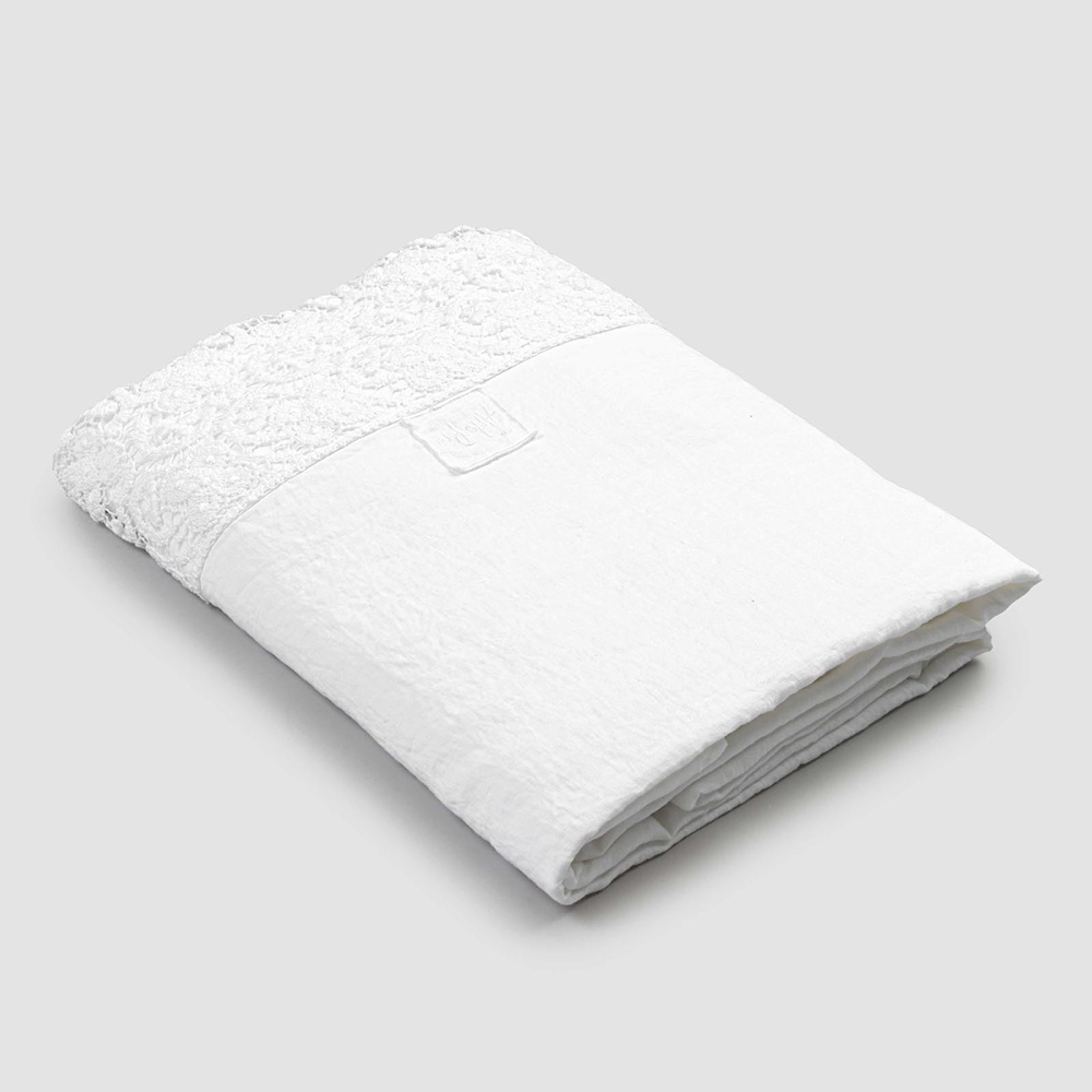 Bettlaken aus reinweißem Leinen mit verschiedenen Spitzen, luxuriöses Design, hergestellt in Italien.
