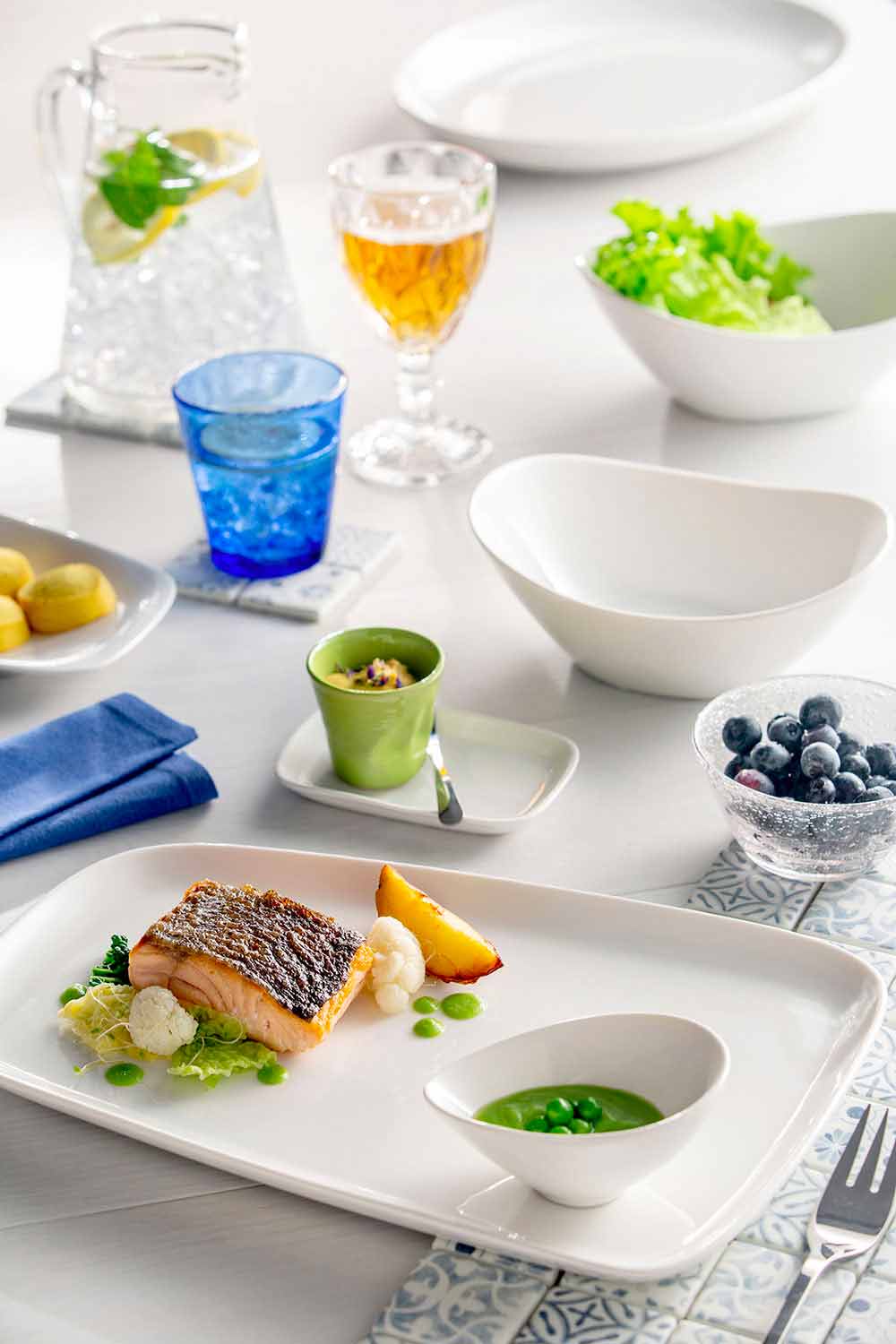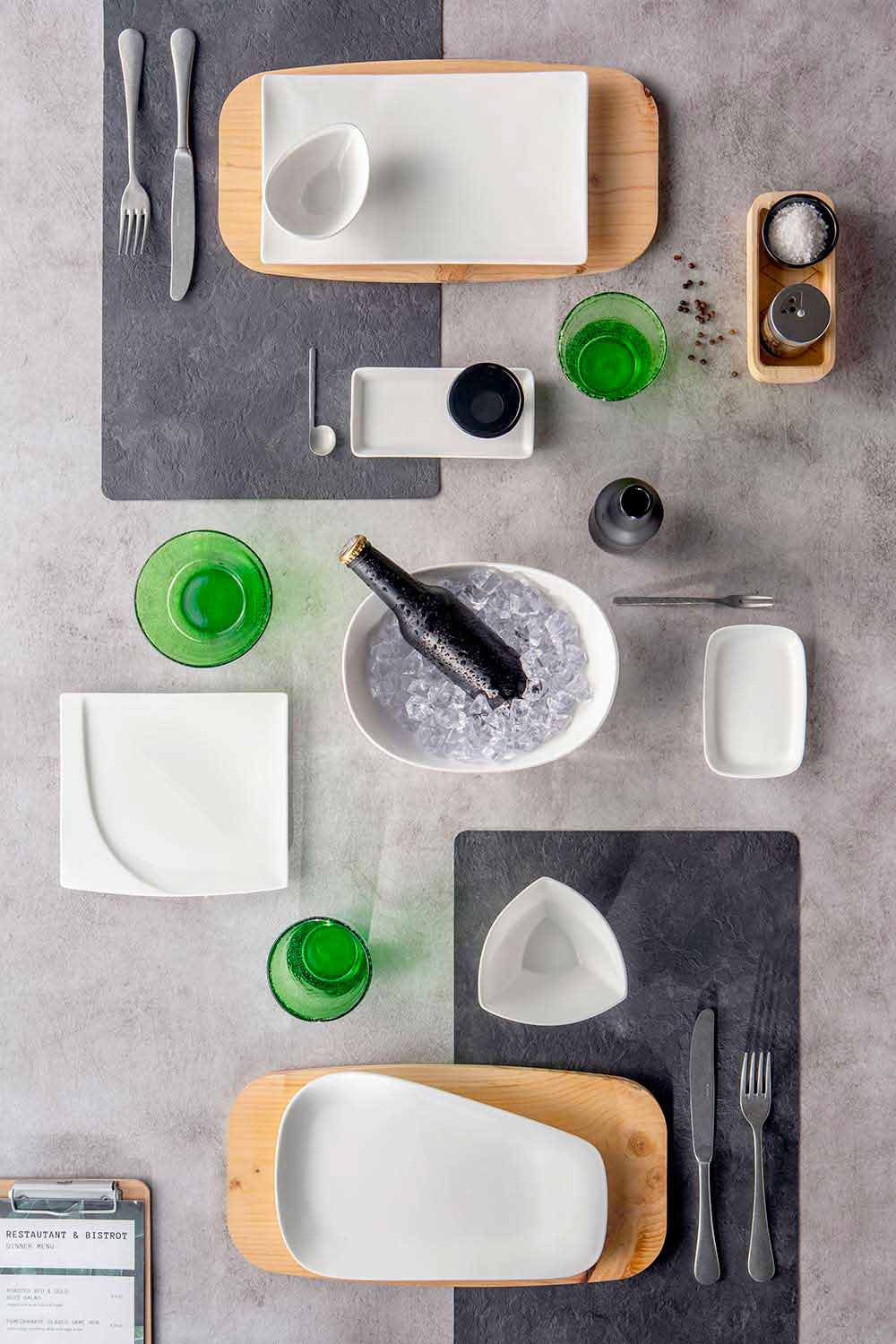 • Vielseitigkeit : Die Produkte wurden speziell für jede Art von Lebensmittel und Umgebung entwickelt, sodass sie sowohl für Vorspeisen als auch für erste Gänge, zweite Gänge oder Desserts verwendet werden können und Raum für Fantasie und Kreativität bieten. Eine vielseitige Kollektion für unbegrenzte Kombinationen.