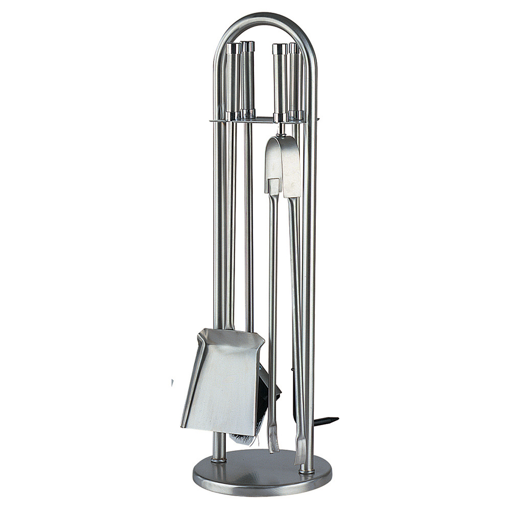 Das Set enthält vier unverzichtbare Werkzeuge für die Pflege Ihres Kamins , jeweils mit langen Griffen für sicheres Feuermanagement. Die Werkzeuge sind elegant an Ständern aufgehängt, was das Set nicht nur praktisch, sondern auch zu einem integralen Bestandteil Ihrer Einrichtung macht.