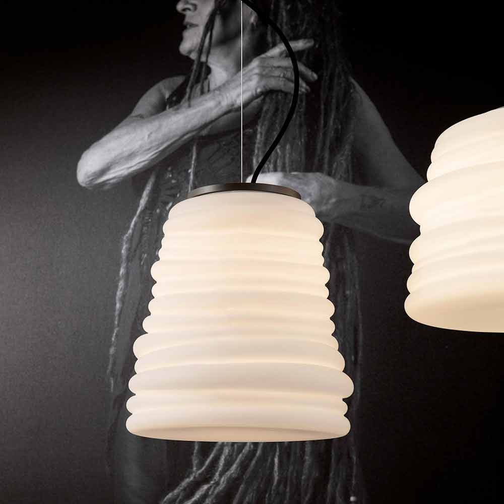 Die Leuchte ist mit einem Satin - Weiß Glaswasc für ein völlig italienisches Design, die durch unkonventionelle Experimentier- und kontinuierliche Forschung zwischen Tradition und Moderne gemacht, zu überraschen , ist in der Lage, es wagt , und erregt, so dass Sie Ihre Emotionen durch einen originellen und persönlichen dekorativen Einsatz auszudrücken des Lichts.