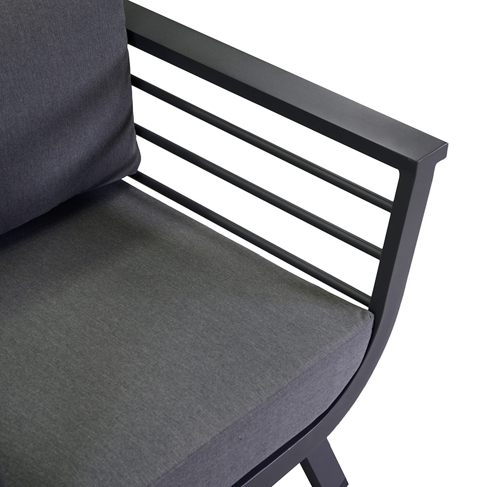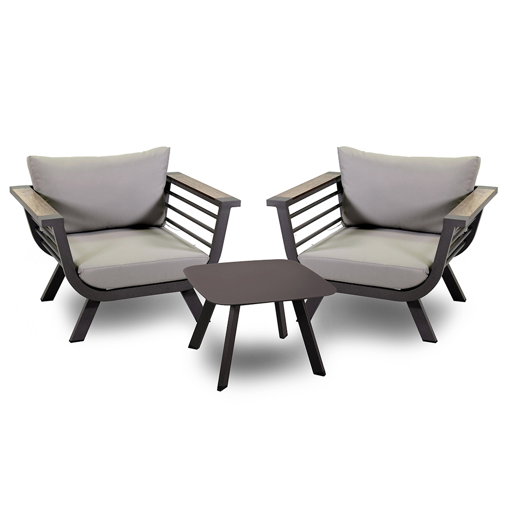 Das moderne Design der Sessel mit eleganten Armlehnen und die Robustheit des Aluminiums sorgen für Haltbarkeit und Stabilität und machen diese Lounge zu einer idealen Wahl, um unzählige Momente im Freien zu genießen.