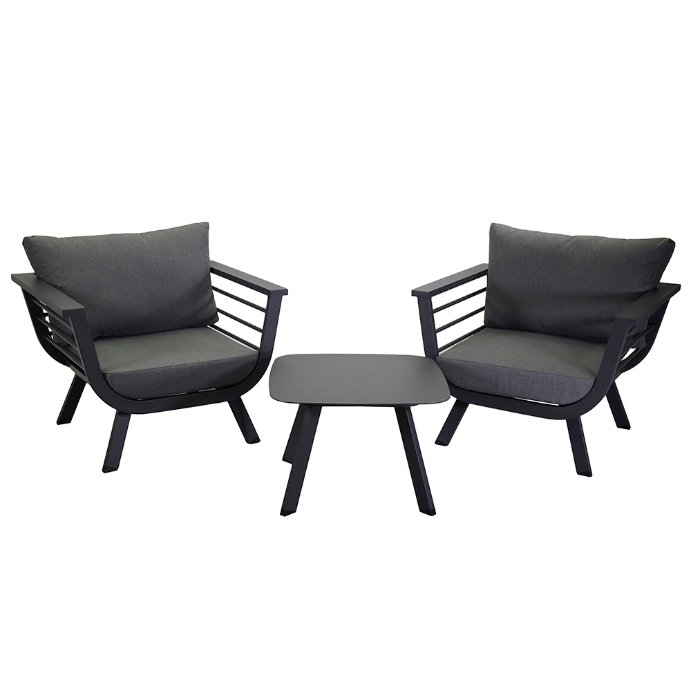 Tauchen Sie ein in Komfort und Stil mit diesem Aluminium Lounge Set , perfekt für jeden Außenbereich. Dieses Set besteht aus zwei geräumigen Sesseln mit Kissen, die den ultimativen Komfort und Halt bieten. Der passende Couchtisch ist ideal, um Getränke und Bücher in Reichweite aufzubewahren und macht Ihren Außenbereich zu einer wahren Oase der Entspannung.