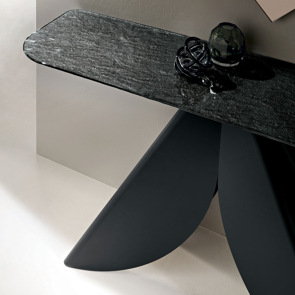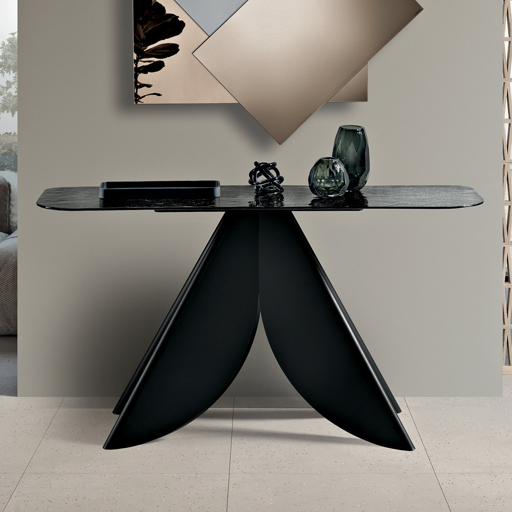 Ein eleganter, in Italien gefertigter Designer-Konsolentisch , ideal für die stilvolle Einrichtung von Eingangsbereich , Wohnzimmer oder Fluren. Sein modernes Design vereint optische Leichtigkeit mit einer starken Ästhetik und verwandelt ein funktionales Element in ein wahres Dekorationsobjekt.