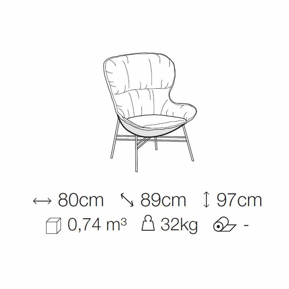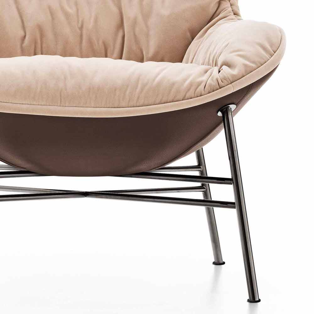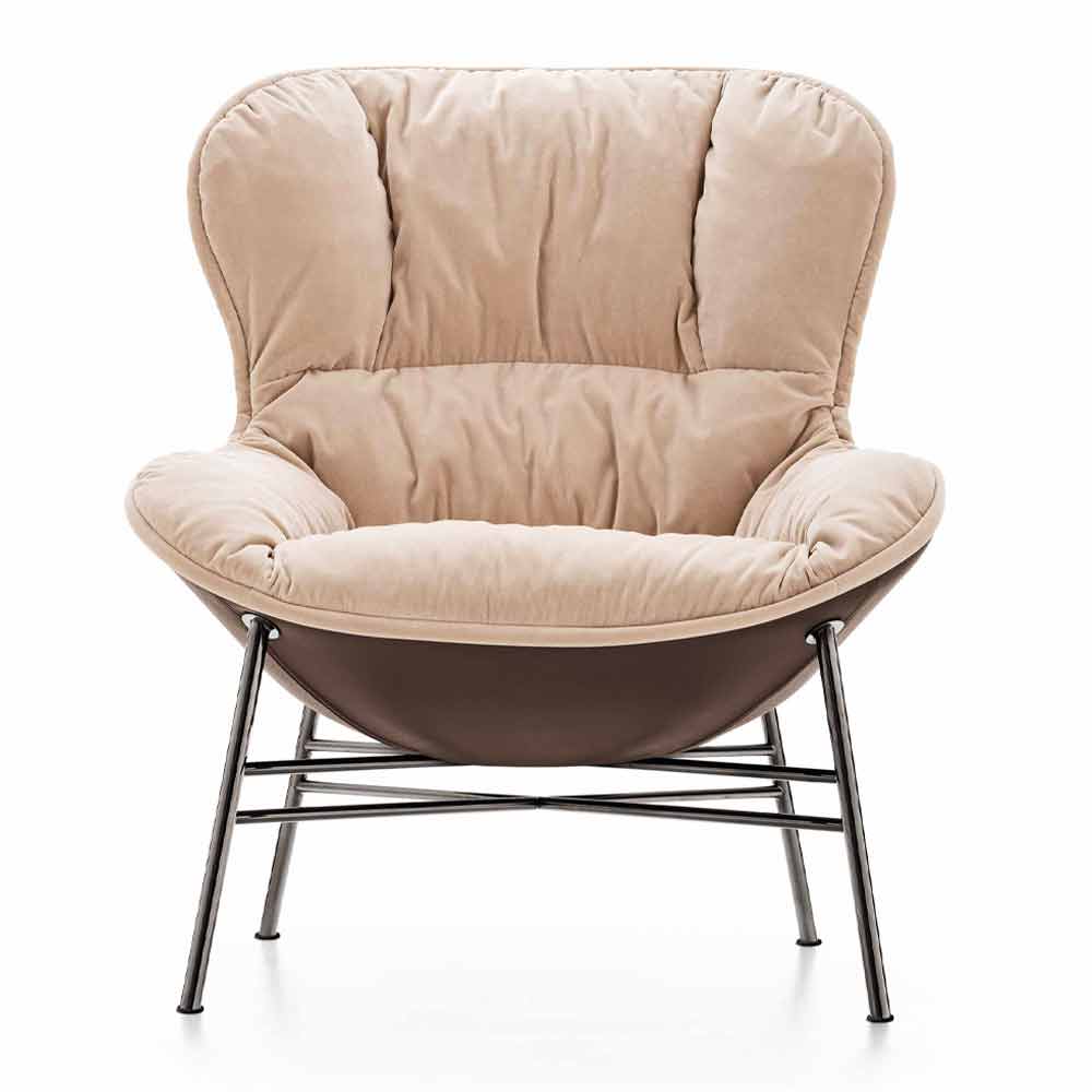 Gepolsterter und gepolsterter Wohnzimmersessel mit Metallfuß, hochwertig Made in Italy.