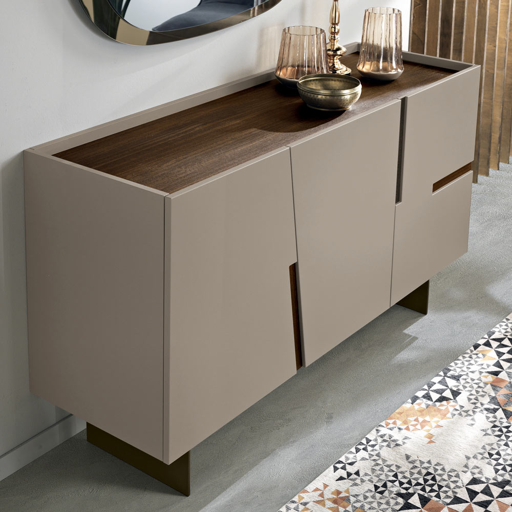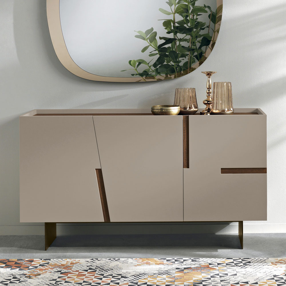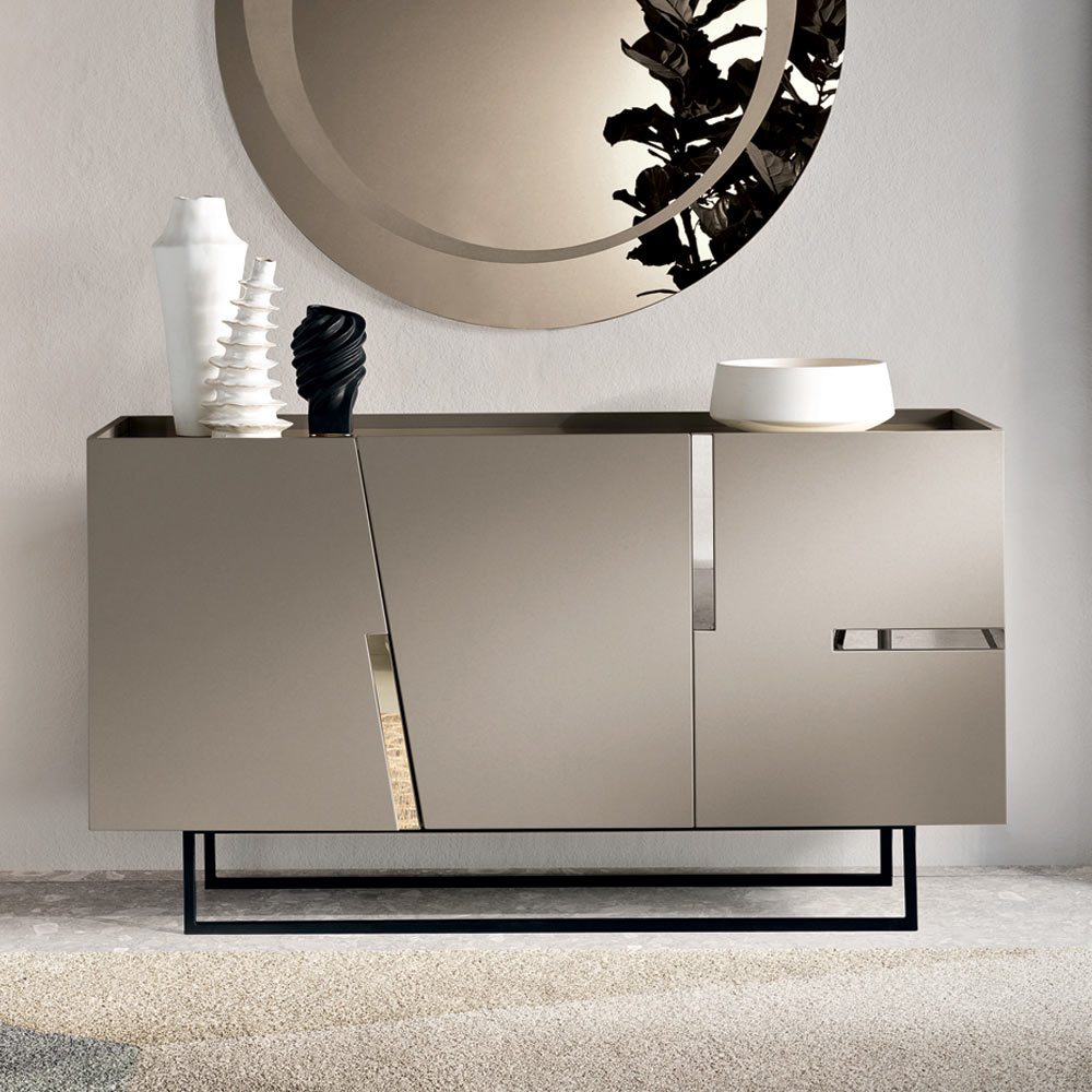 Das lackierte Metallgestell , erhältlich in verschiedenen Ausführungen, verleiht der Konstruktion eine schlanke, optische Leichtigkeit und einen modernen Touch. Dank der gelungenen Verbindung von Ästhetik und Funktionalität ist dieses Sideboard die ideale Lösung für stilvolle Raumgestaltung.
