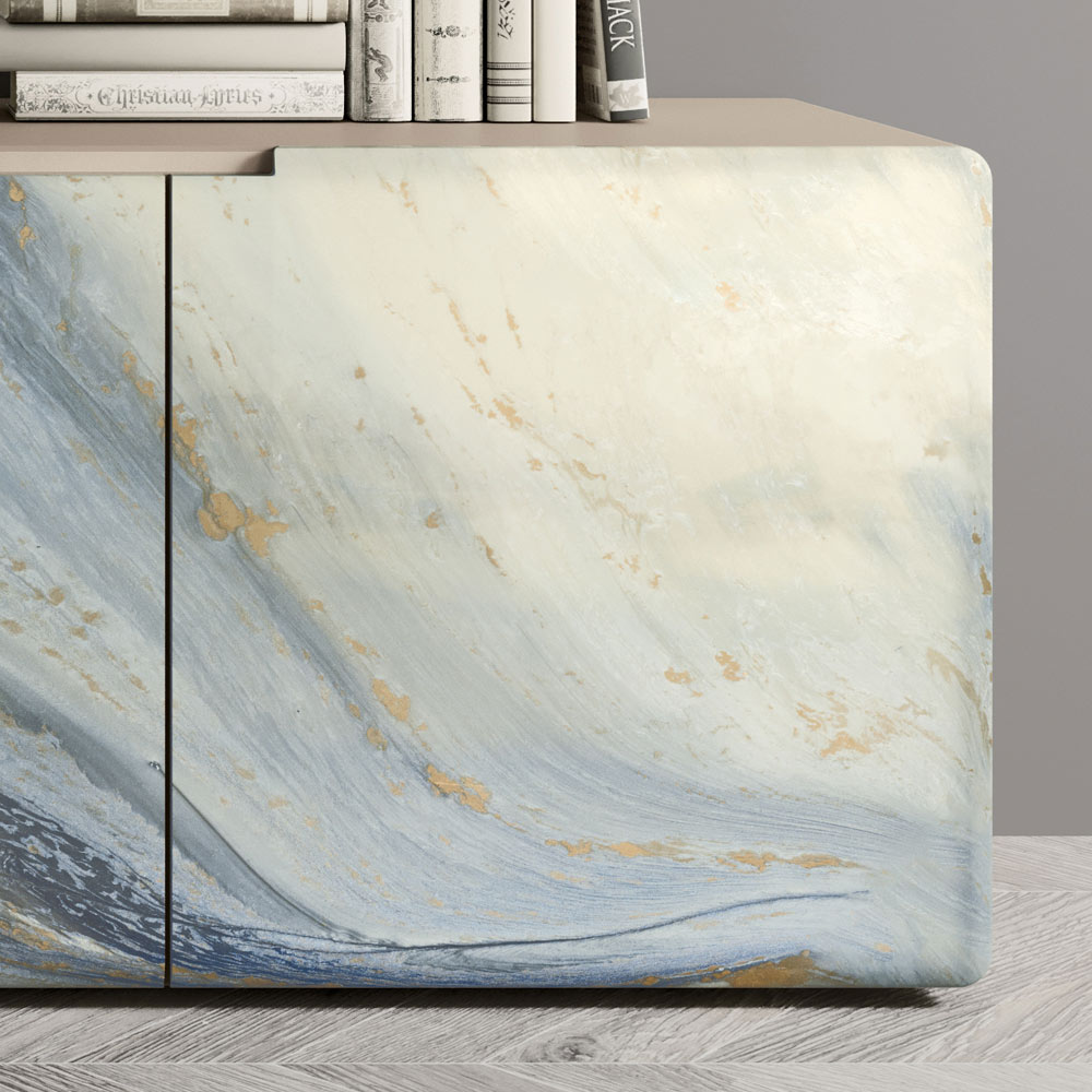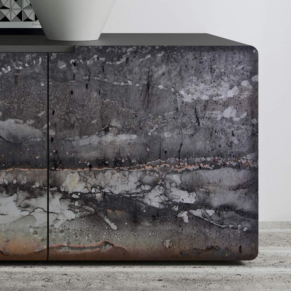 Wohnzimmer-Sideboard mit MDF- Schaleund Eisenbasis, 3 internenMDF-Regalen, Rückwand aus massivem Mehrschichtholz , MDF-Türen aus Jupiter/Venus-Harz, vollständig in Italien hergestellt. Das Produkt ist Teil der neuen Linie moderner Produkte, die mit Respekt vor der Natur hergestellt werden. Dieses elegante Sideboard zeichnet sich durch die Funktionalität und hohe Qualität italienischer Handwerkskunst aus. Ein vielseitiges und originelles Design , das für verschiedene Verwendungszwecke in verschiedenen Bereichen des Hauses konzipiert ist und die Einrichtung auf exklusive Weise je nach Ihrem Geschmack und Bedarf vervollständigt.