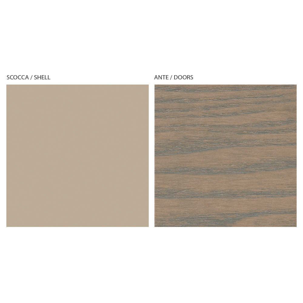 Wohnzimmer-Sideboard im modernen Stil, komplett in Italien hergestellt, bestehend aus einem Bodenrahmen aus Eisen mit Nerz-Finish, einem Korpus aus MDF mit Nerz-Finish und einer Rückenlehne aus Massivholz , komplett mit Türen aus cappuccinofarbenerEschenholzplatte,hergestellt in Italien Verwendung von Prozessen und hochwertigen Materialien kombiniert mit dem raffinierten Geschmack zeitgenössischen Designs. Ein vielseitiges und originelles Design , das für verschiedene Verwendungszwecke in verschiedenen Bereichen des Hauses konzipiert ist und die Einrichtung auf exklusive Weise je nach Ihrem Geschmack und Bedarf vervollständigt.