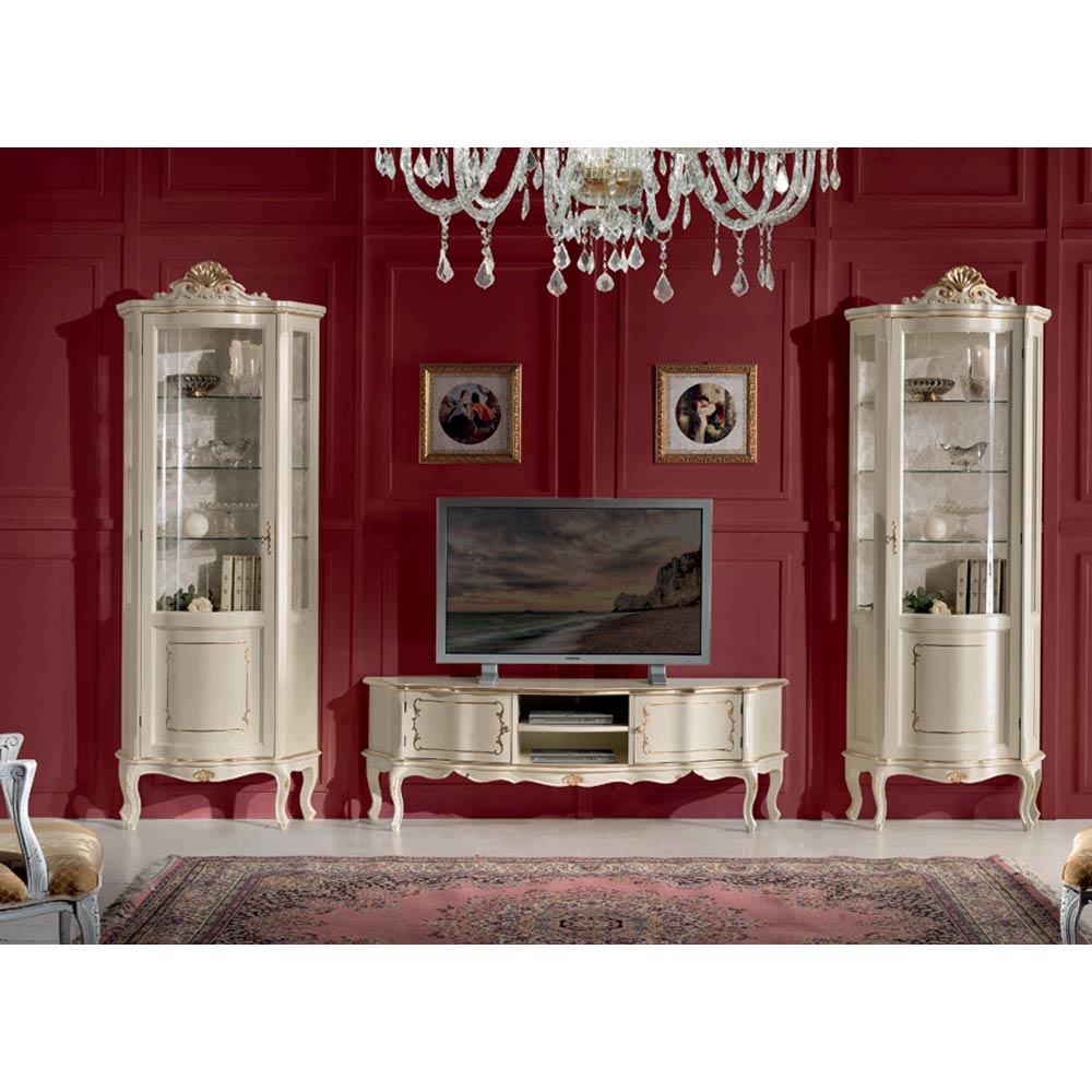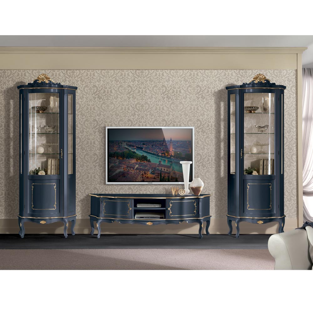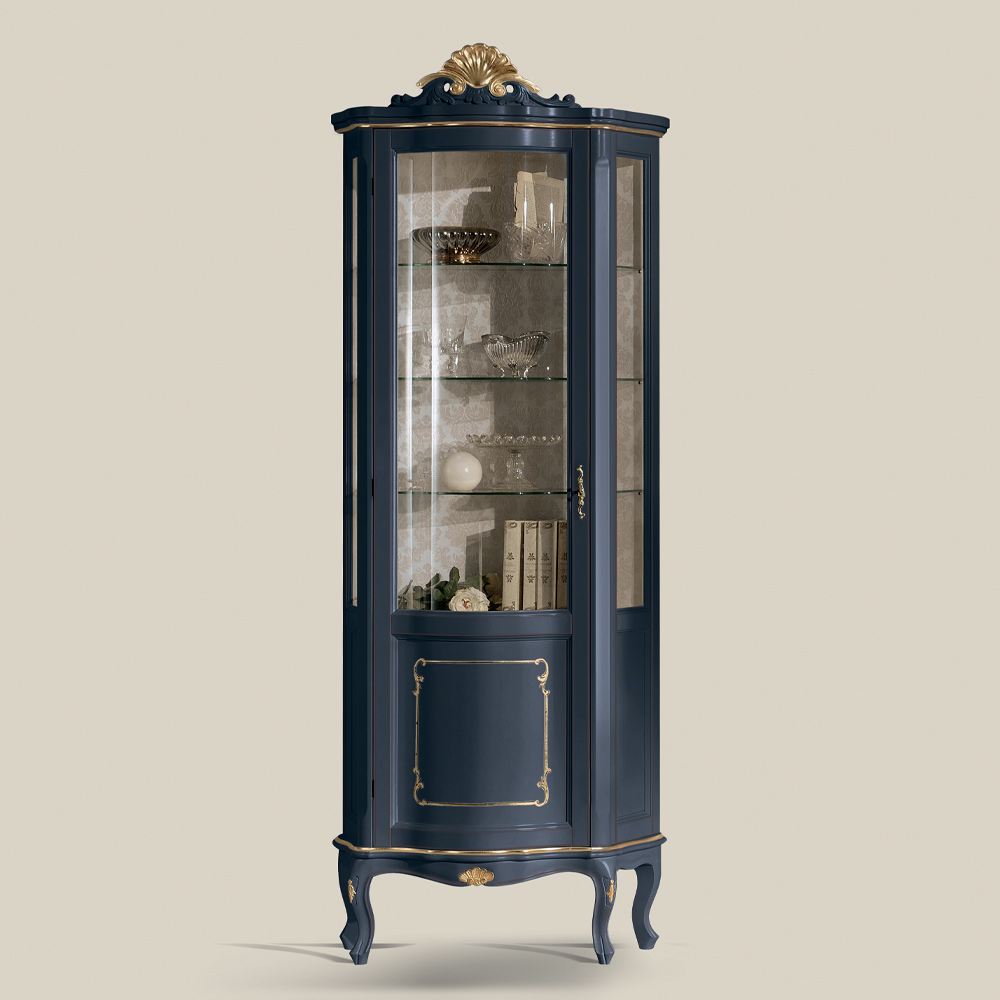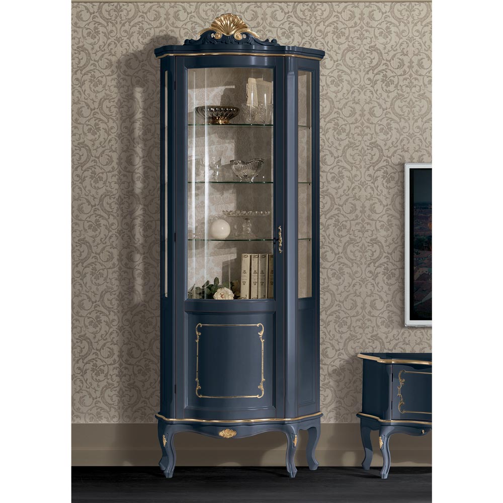 Wohnzimmer- Vitrine aus luftblauem oder weiß-goldenem Holz mit Tür, perfekt, um jeden Wohnbereich mit Geschmack und Eleganz zu dekorieren. Erhältlich in der Version mit Tür, die nach rechts oder links geöffnet werden kann. Eine einzigartige und raffinierte Ergänzung, die vollständig in Italien von erfahrenen Handwerksmeistern hergestellt wird, Meister der Kunst, die jede Ergänzung mit Weisheit und Geschmack für Eleganz vervollständigen. Die Produktion erfolgt unter Verwendung hochwertiger Materialien und mit der größten Sorgfalt und Professionalität, die die Produkte Made in Italyauszeichnet .