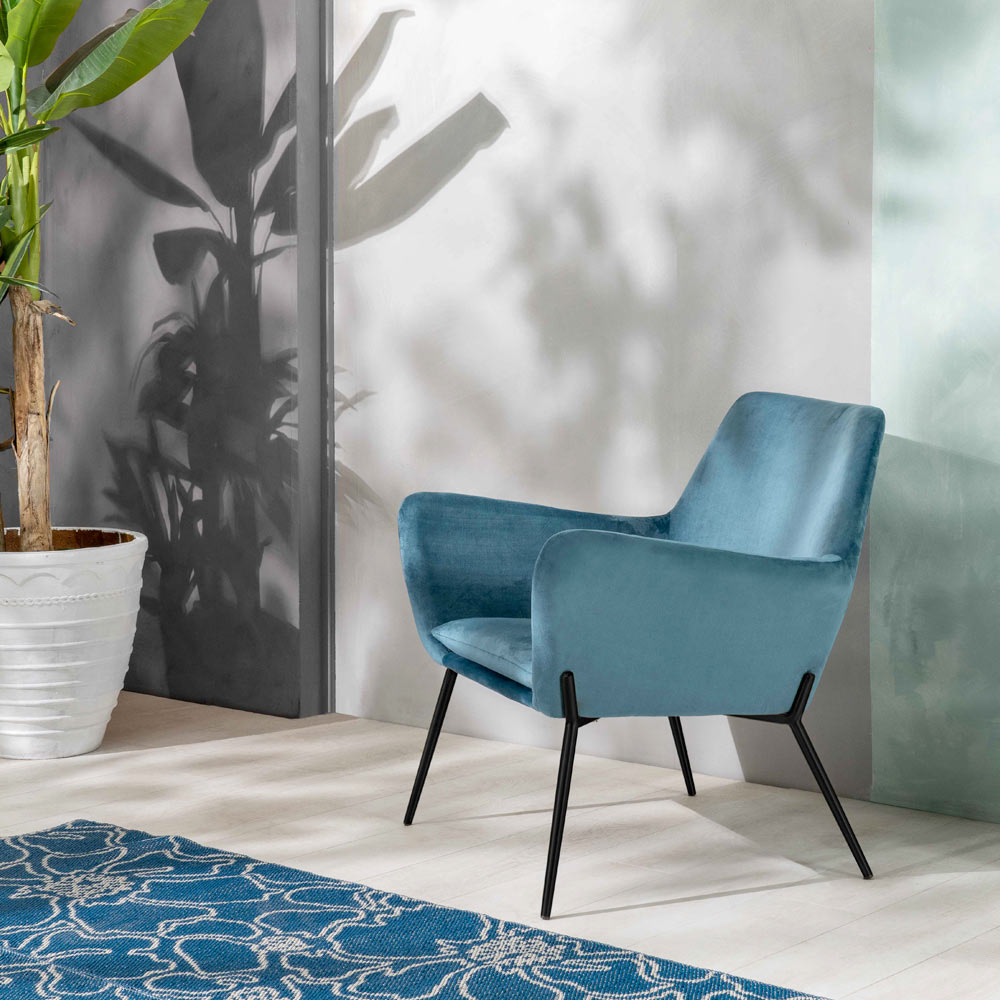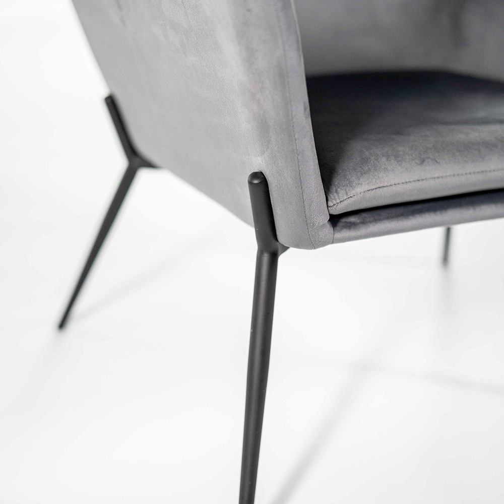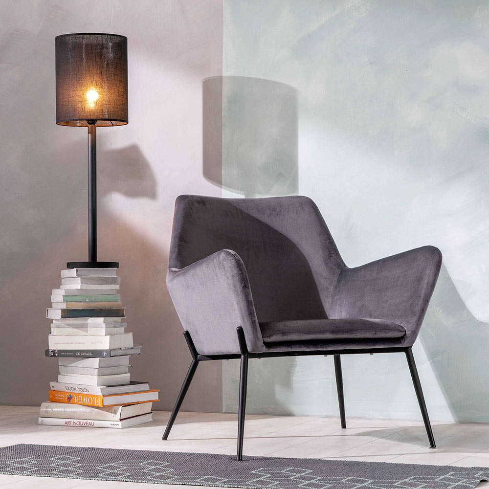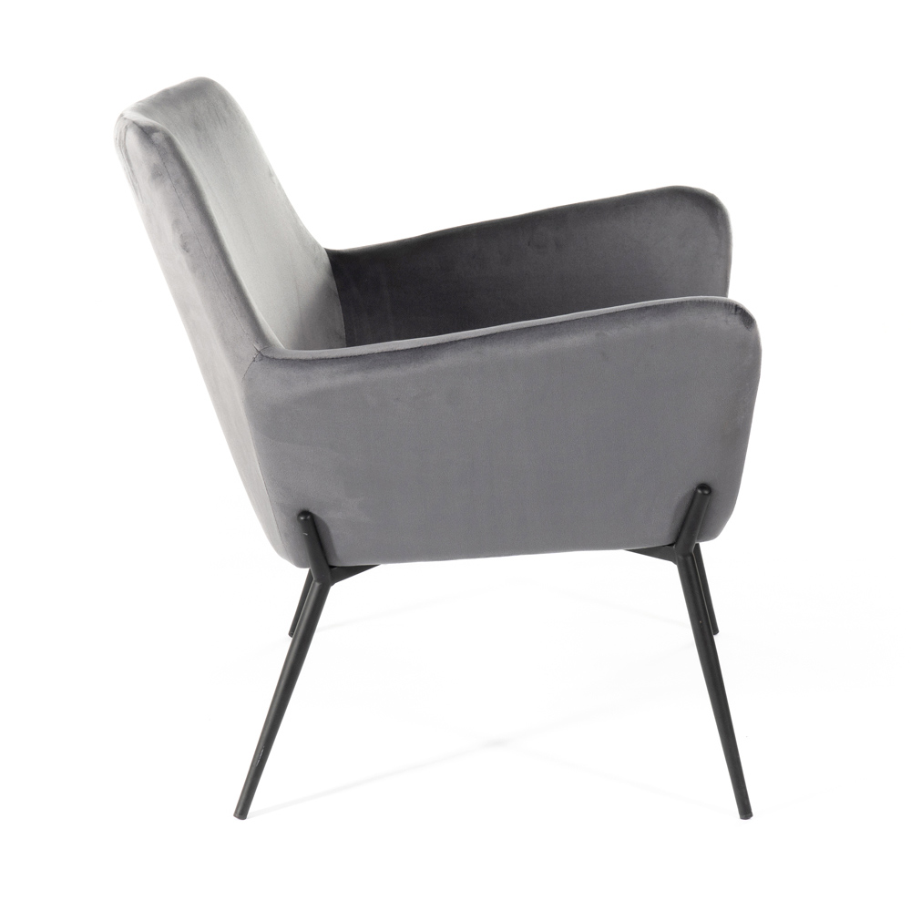 Innensessel mit Samtsitz und mattschwarzem Metallgestell.