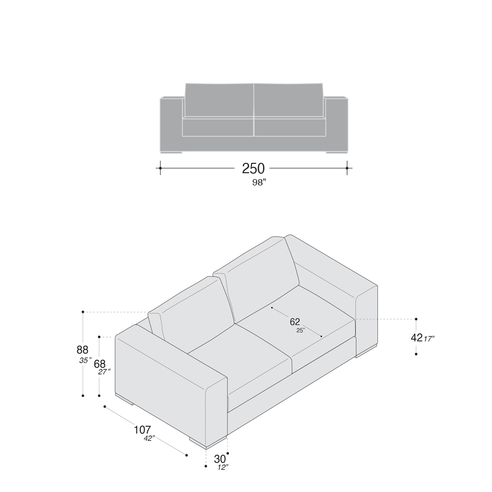 - Länge: 250 x Tiefe: 107 x Höhe: 88 cm