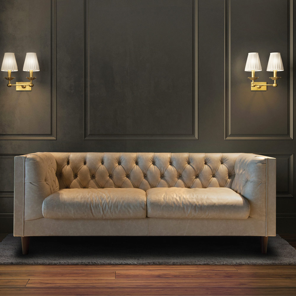 beiges Vintage-Antikleder mit Füßen in Walnuss-Finish, nicht abnehmbare Struktur, abnehmbare Sitz- und Rückenkissen