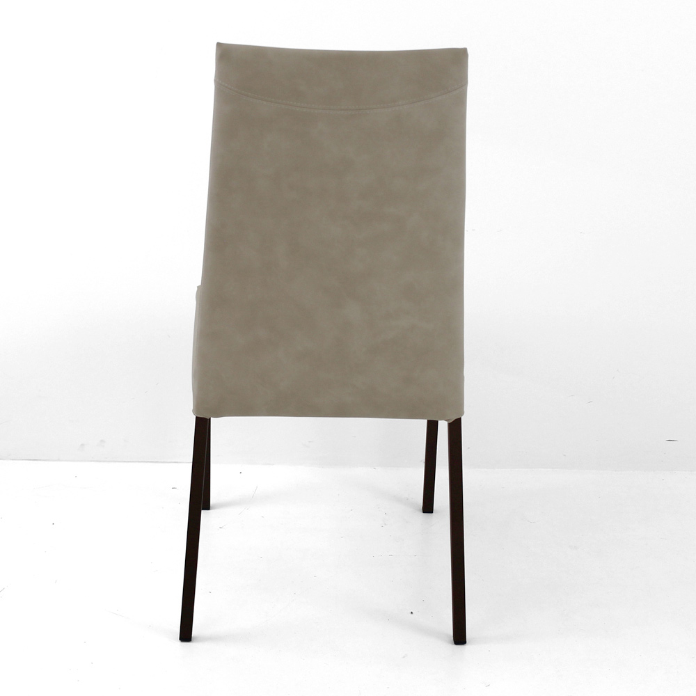 Komplett in Italien hergestellter Esszimmerstuhl aus elfenbeinfarbenem Rebel-Kunstleder mit rostfarbenen, matt lackierten Beinen. Der Stuhl mit modernem und fesselndem Design zeichnet sich durch eine Halbmondnähte auf der Rückseite und eine geschwungene Rückenlehne aus, die ihn sehr bequem machen und ihm einen einzigartigen Hauch von Originalität verleihen. Dank seiner schlichten und weichen Oberflächen ist es eine perfekte Idee für alle, die es lieben, ihr Wohnzimmer, Esszimmer und ihre Küche geschmackvoll und stilvoll einzurichten, ohne auf Funktionalität und Komfort zu verzichten.