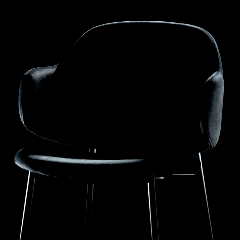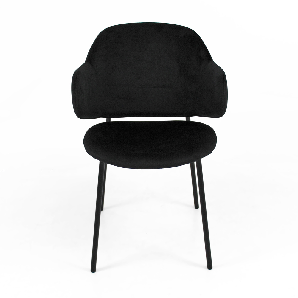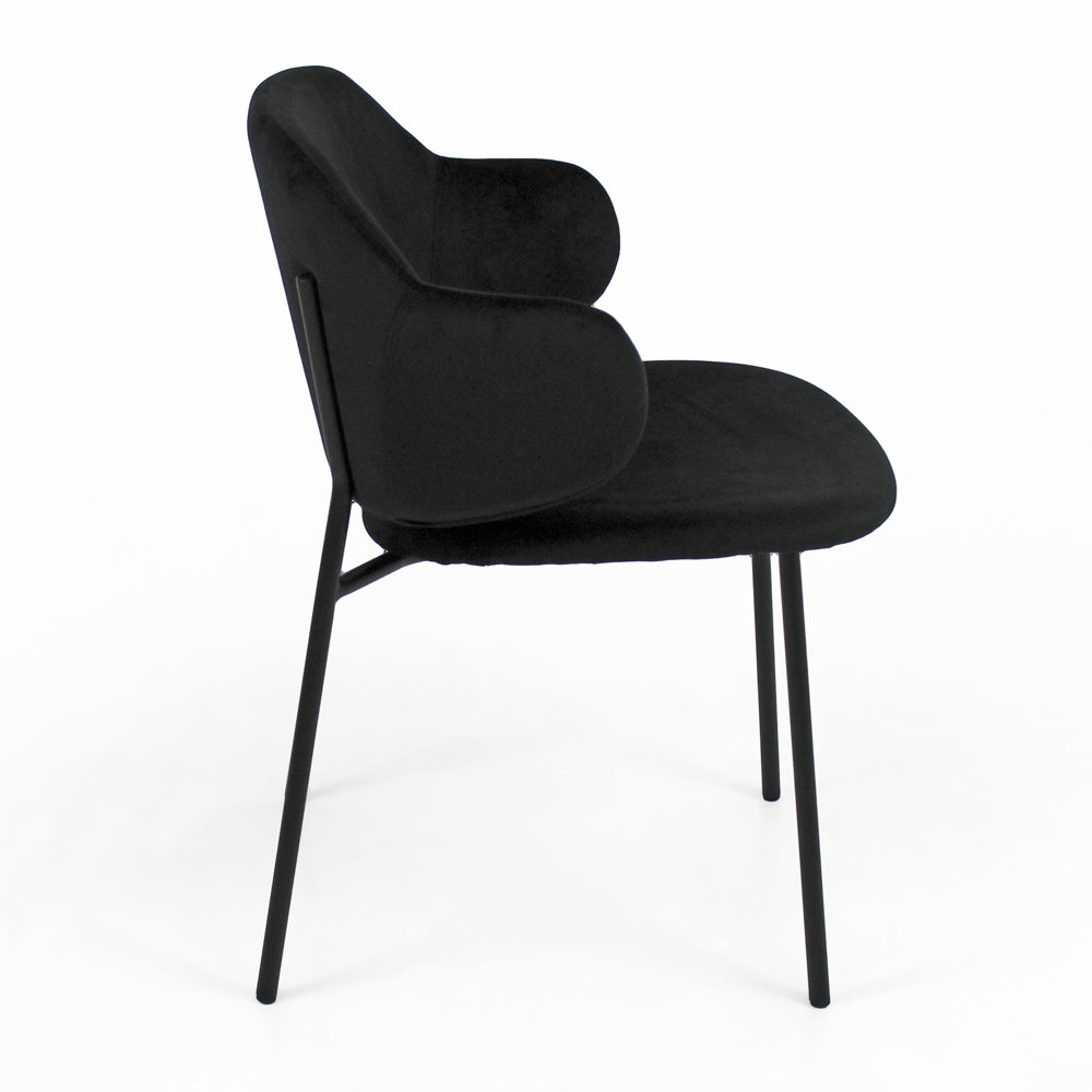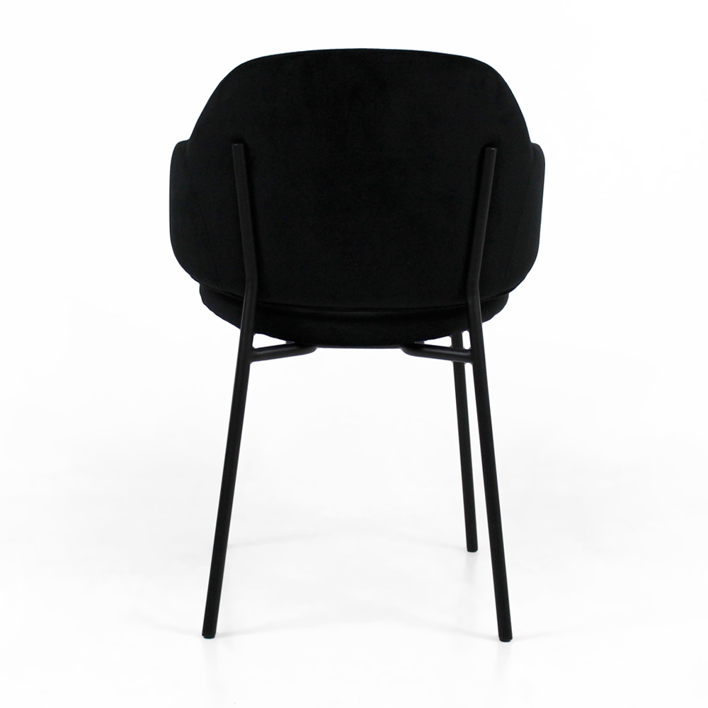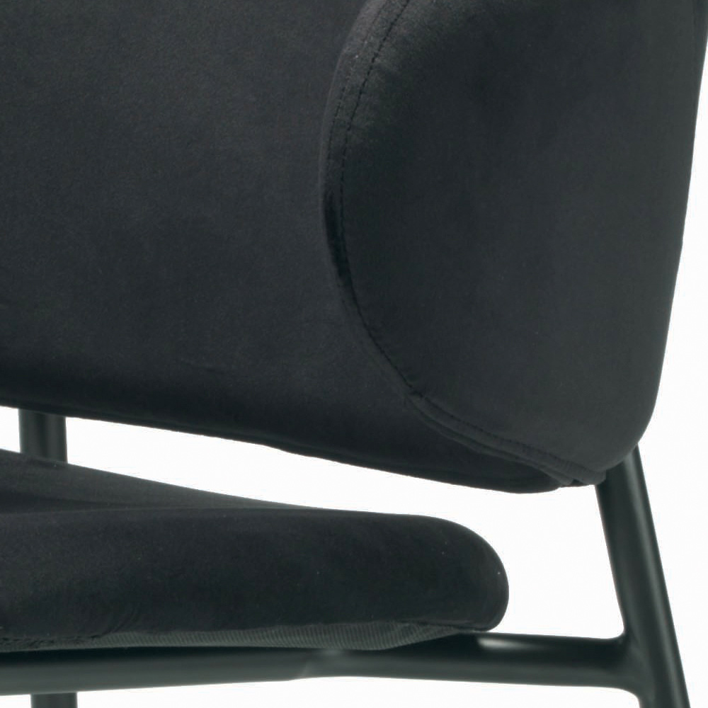 Wohnzimmerstuhl mit Sitz und Rückenlehne aus vollständig bezogenem Stahl und Beinen aus schwarz lackiertem Stahl. Dieser Stuhl ist die perfekte Idee für alle, die Innenräumen einen Hauch von Einzigartigkeit und zeitloser Eleganz verleihen möchten. Der bequeme und bequeme Sitz und die verwendeten Materialien garantieren Praktikabilität und Funktionalität bei jeder Gelegenheit.