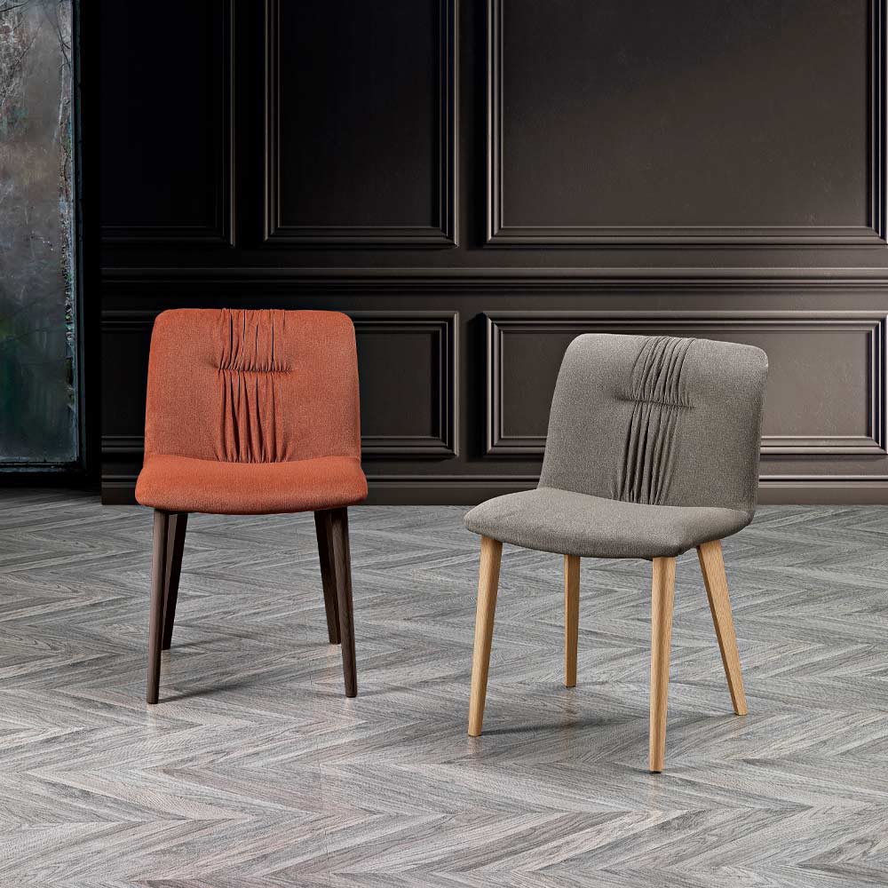 Moderner Monocoque-Stuhl aus farbigem Stoff und Eschenbeinen, Made in Italy-Design.