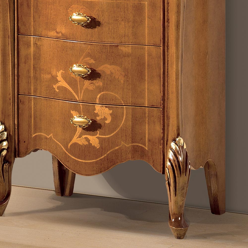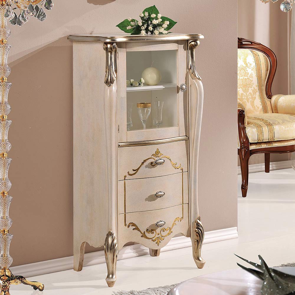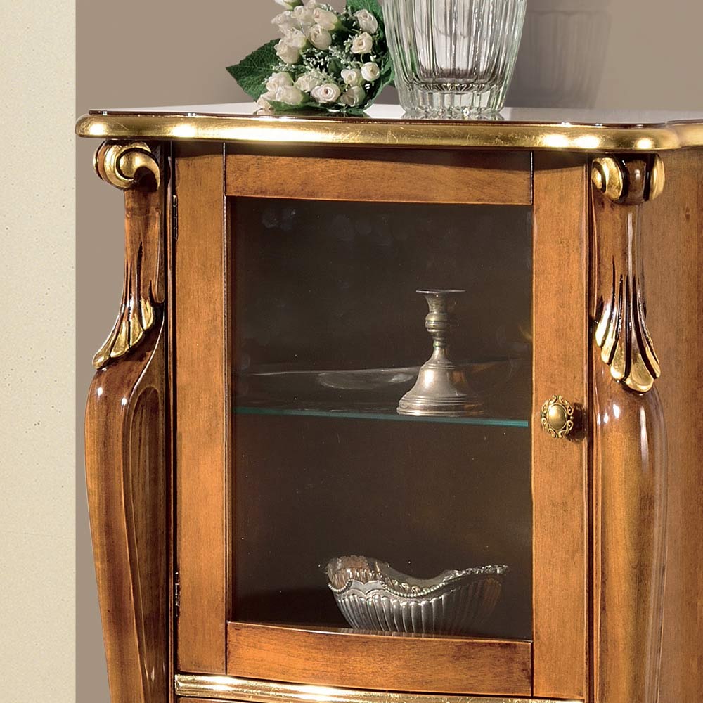 Vitrine für Wohnzimmer mit Struktur aus Holz und komplett mit Glastür und 3 praktischen Schubladen , die Ihr Wohnzimmer mit zeitloser Eleganz ausstatten. Erhältlich in zwei Varianten: Bassano-Nussbaum und Antikgold-Finish oder in Weiß und Silberholz . Eine einzigartige und raffinierte Ergänzung, die vollständig in Italien von erfahrenen Handwerksmeistern hergestellt wird, Meister der Kunst, die jede Ergänzung mit Weisheit und Geschmack für Eleganz vervollständigen. Die Produktion erfolgt unter Verwendung hochwertiger Materialien und mit der größten Sorgfalt und Professionalität, die die Produkte Made in Italyauszeichnet .