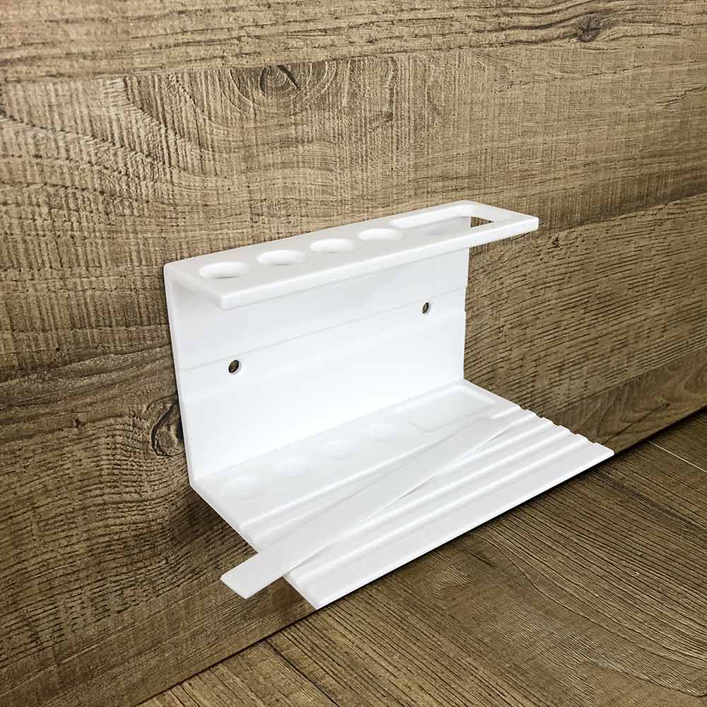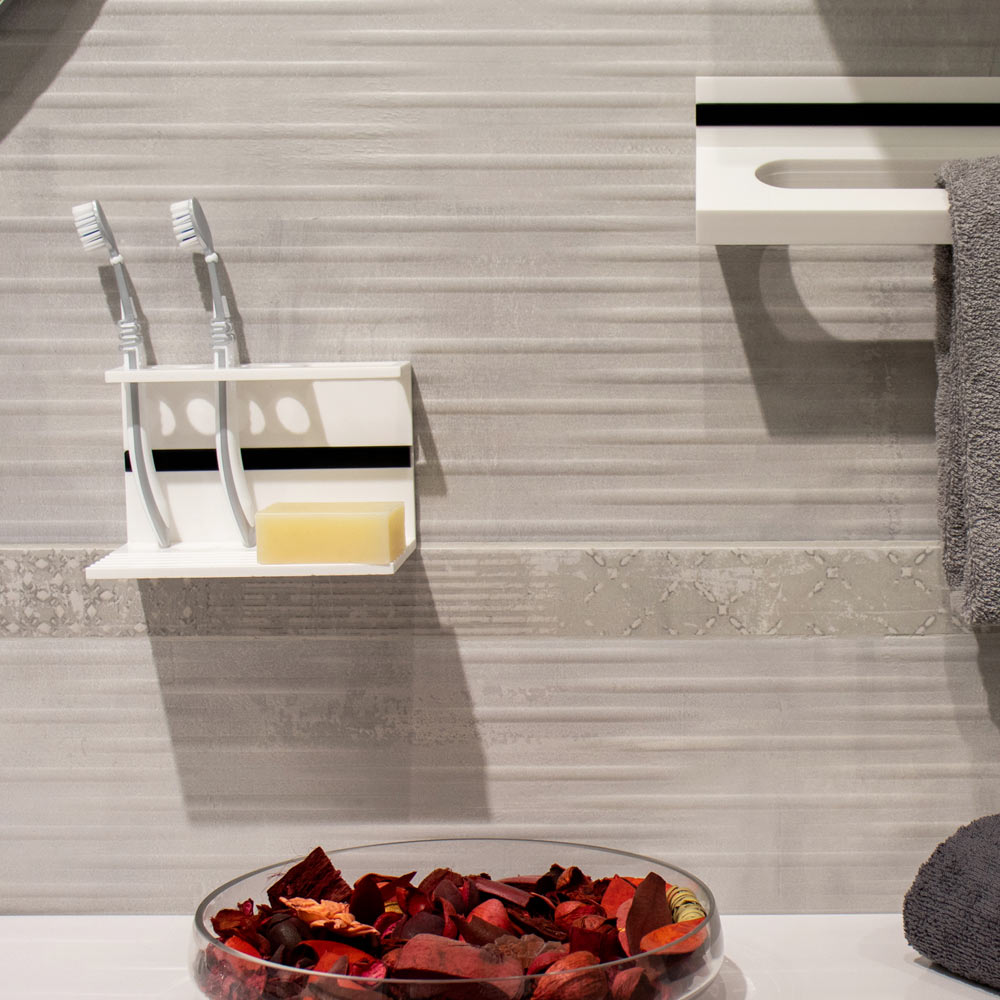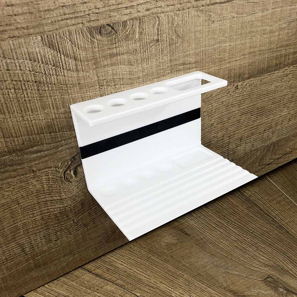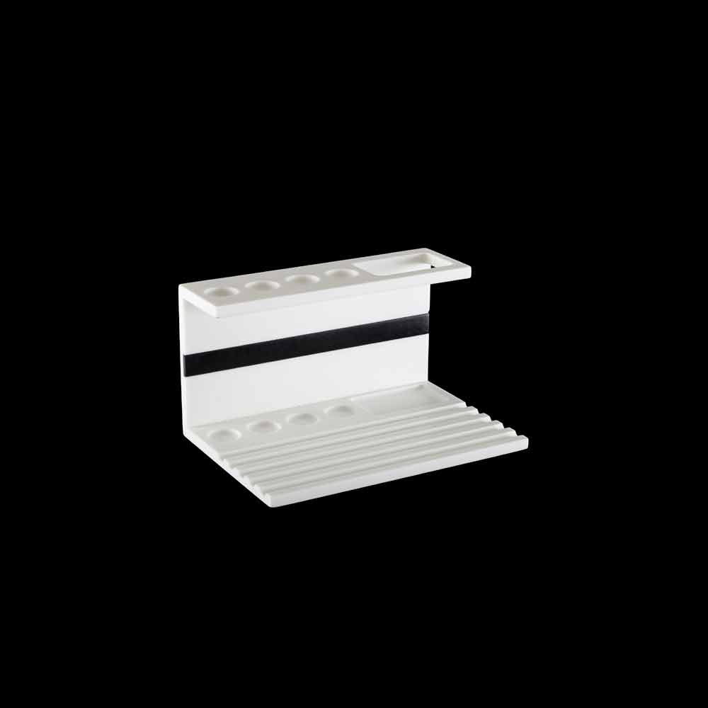 Wählen Sie diesen Zahnbürstenhalter , Zahnpasta und Seife mit einer Dicke von 6 mm als Badaccessoire für eine moderne und luxuriöse Atmosphäre ganz aus Corian, einem hygienischen Material mit essentiellen Linien.