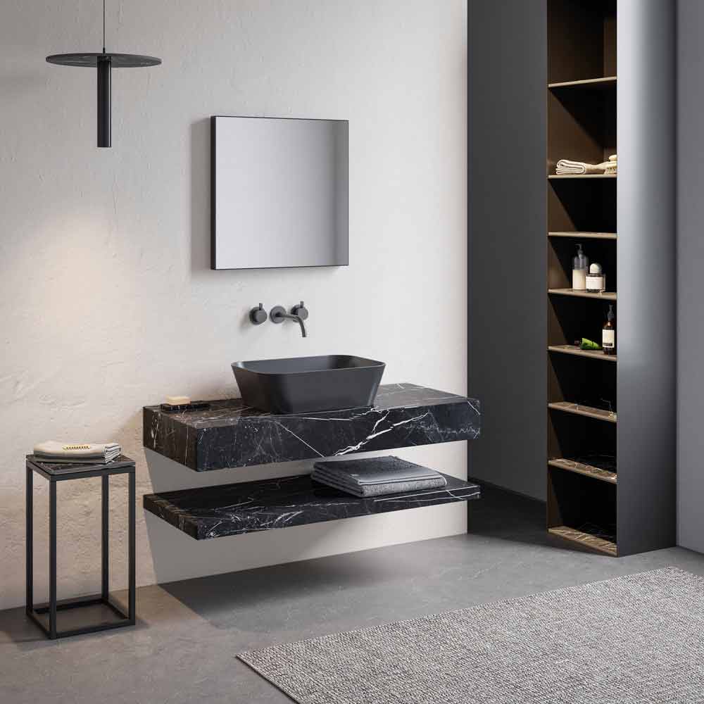 Verfügbare Ausführungen:- Calacatta mit weißem Waschbecken