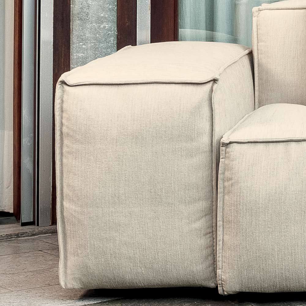 Wohnzimmersofa mit einer Struktur aus Massivholz, Sperrholz, Holzkonglomerat und Füllung aus Rohholzfaserplatten . Die Polsterung der Struktur selbst besteht aus Polyurethanschaum D.25,Federn und Polyesterfasern, die in einer federdichten Canvastasche mit verschiedenen Fächern gesammelt sind. Federn mit elastischen Bändern mit kontrollierter Elastizität sind in einem gekreuzten System montiert. Das Sitzkissen besteht aus hochdichtem Polyurethanschaum mit Federn und Polyesterfasern. Das Rückenkissen besteht aus Polyurethanschaum mitFedern und Polyesterfasern . Die Basis besteht aus schwarzem ABS. Dieses modulare Sofa verbindet Entspannung und Stil und bietet eine tadellose Linie mit quadratischen, aber entspannten Formen. Es wurde entwickelt, um eine angenehme Atmosphäre zu schaffen und maximalen Komfort zu gewährleisten. Eines seiner besonderen Merkmale ist die große Auswahl an Kompositionslösungen, die sich an verschiedene Umgebungen anpassen.