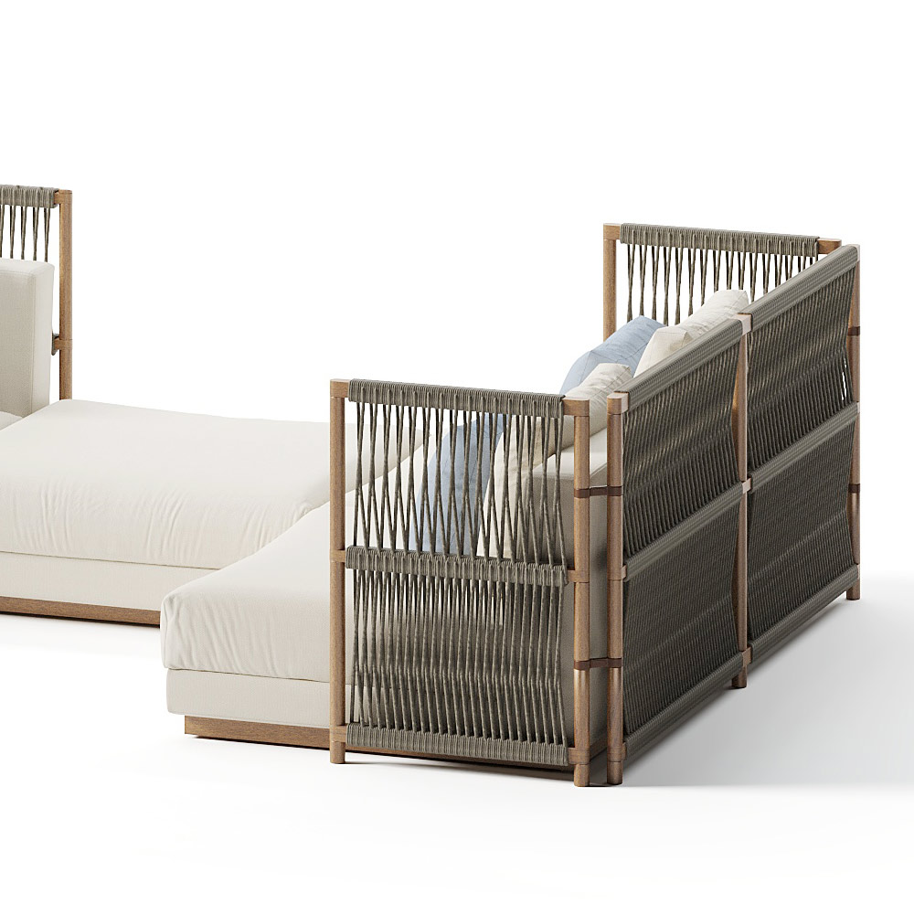 Struktur aus Iroko-Holz und grünem Seilgeflecht erinnert dank ihrer Dekoration an die