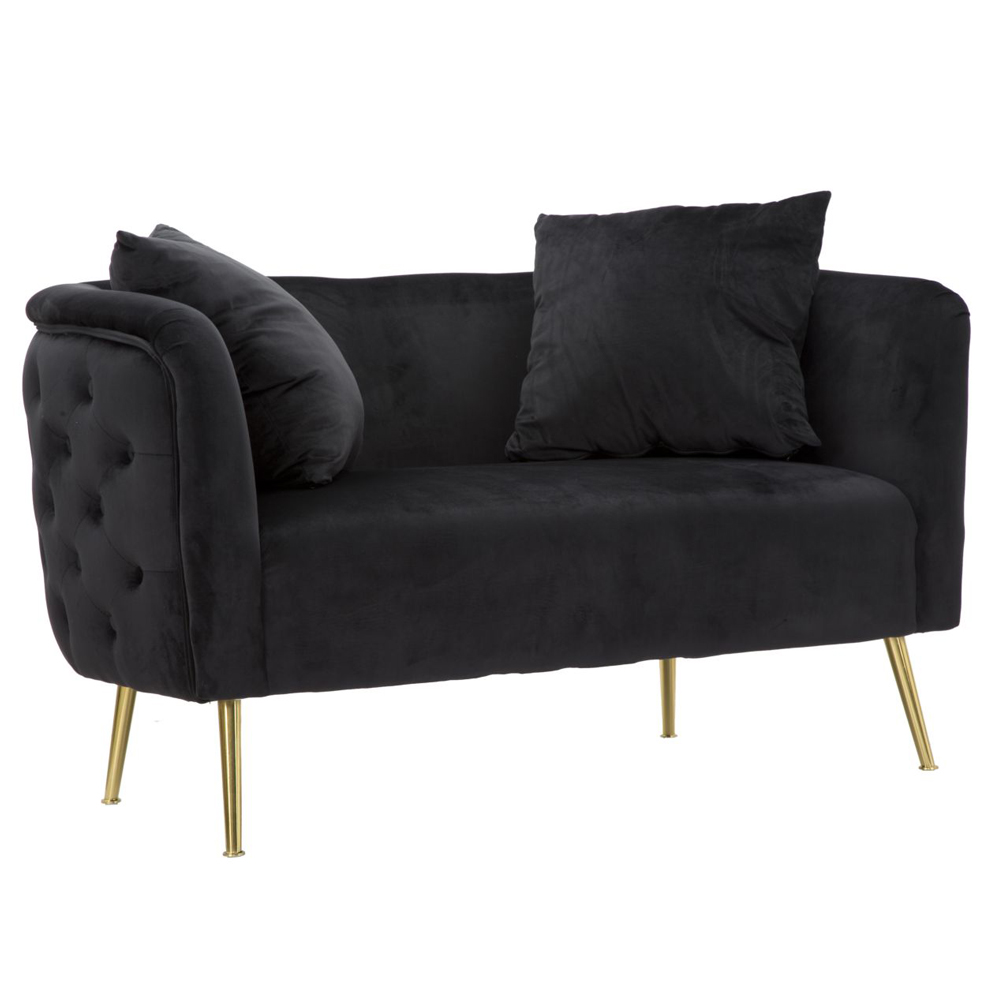Modernes Zweisitzer-Sofa aus Holz, Eisen und Samt.