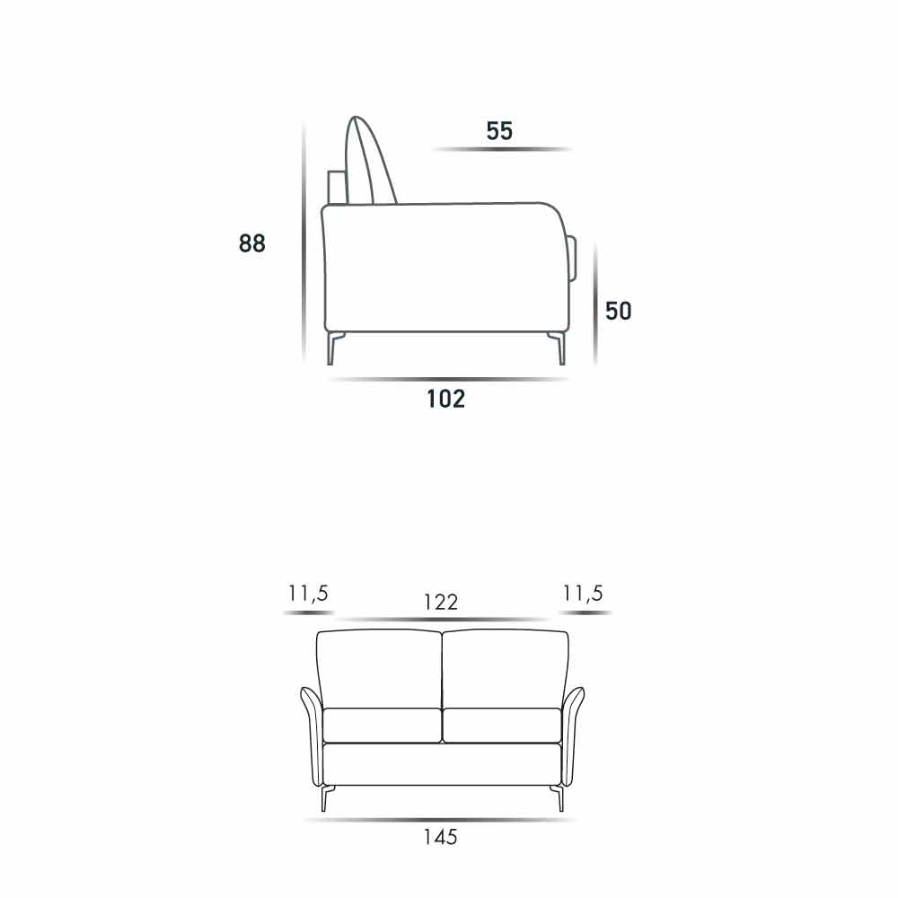 Modernes Design-Zweisitzer-Sofa L.145 cm Öko-Leder / Erica Stoff, hergestellt in Italien